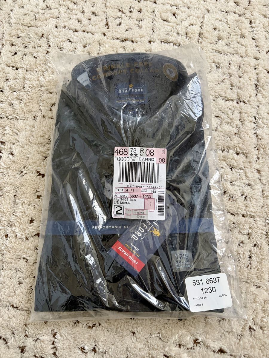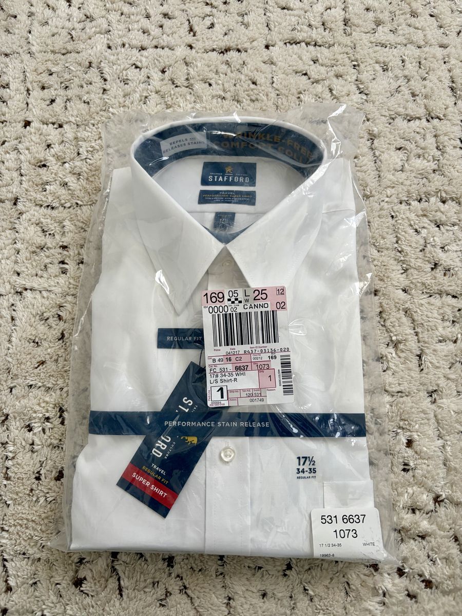Both the black and white dress shirts are Regular Fit Super Shirts (17.5” 34-35). Asking $40 each.