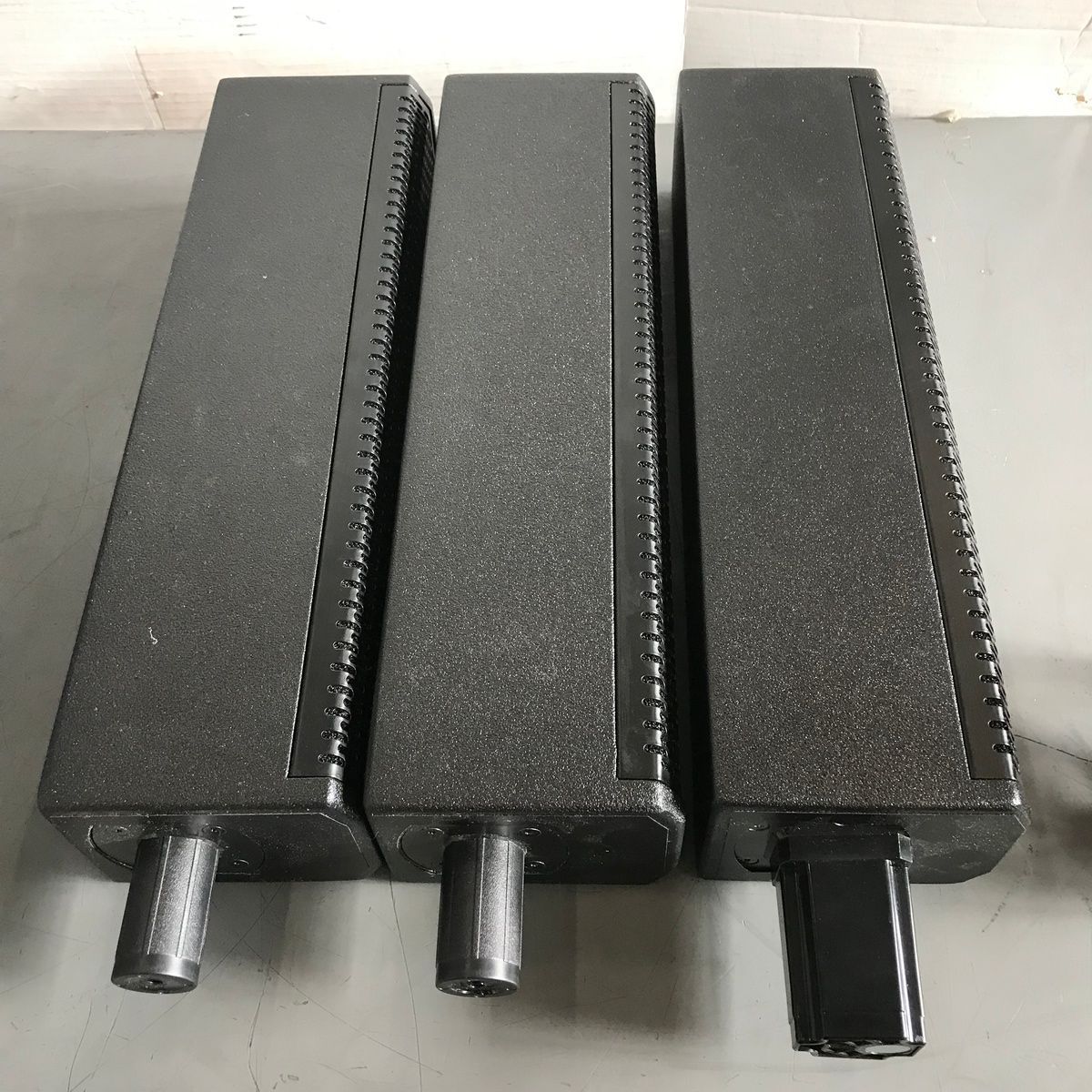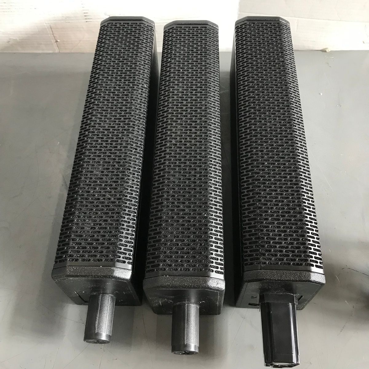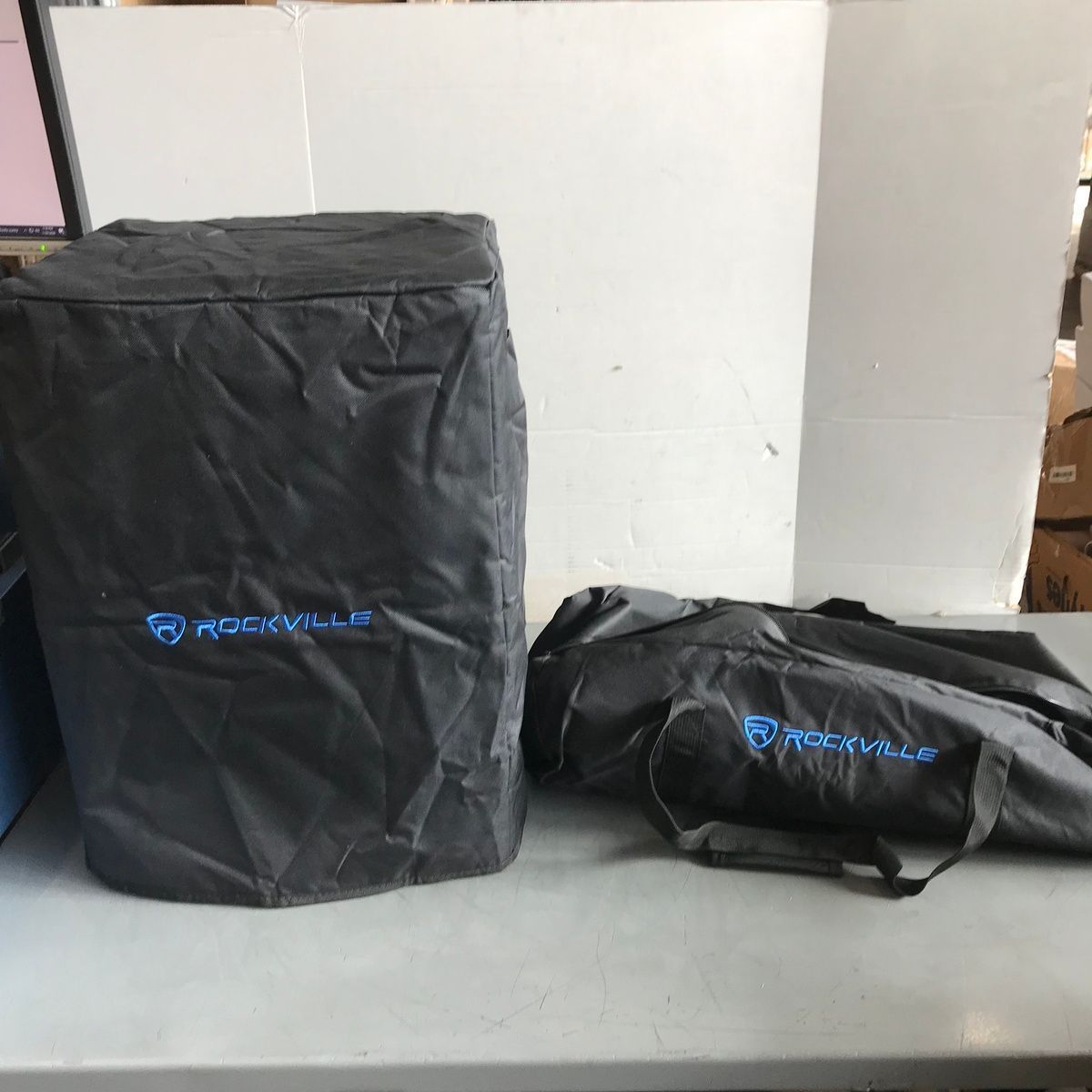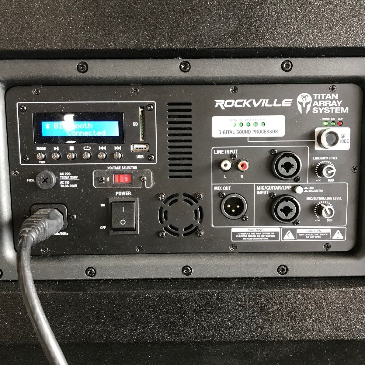 ROCKVILLE TITAN 3200 WATT LINE ARRAY POWERED PA SYSTEM V2 PRO WITH DUAL 10" SUBWOOFER. This is a new line array powered PA system that suffered some cosmetic damage in original shipping. It still works perfectly, and none of it compromises the function, but the front speaker grill is dented in, there are some minor surface marks on the sides and bottom, and there's a small bit of a crack near one of the feet. We'll do our best to show everything in the photos. It powers up, works perfectly, and sounds amazing! These are normally $700. It comes with everything shown. This is your chance to save big-time so don't miss out!!