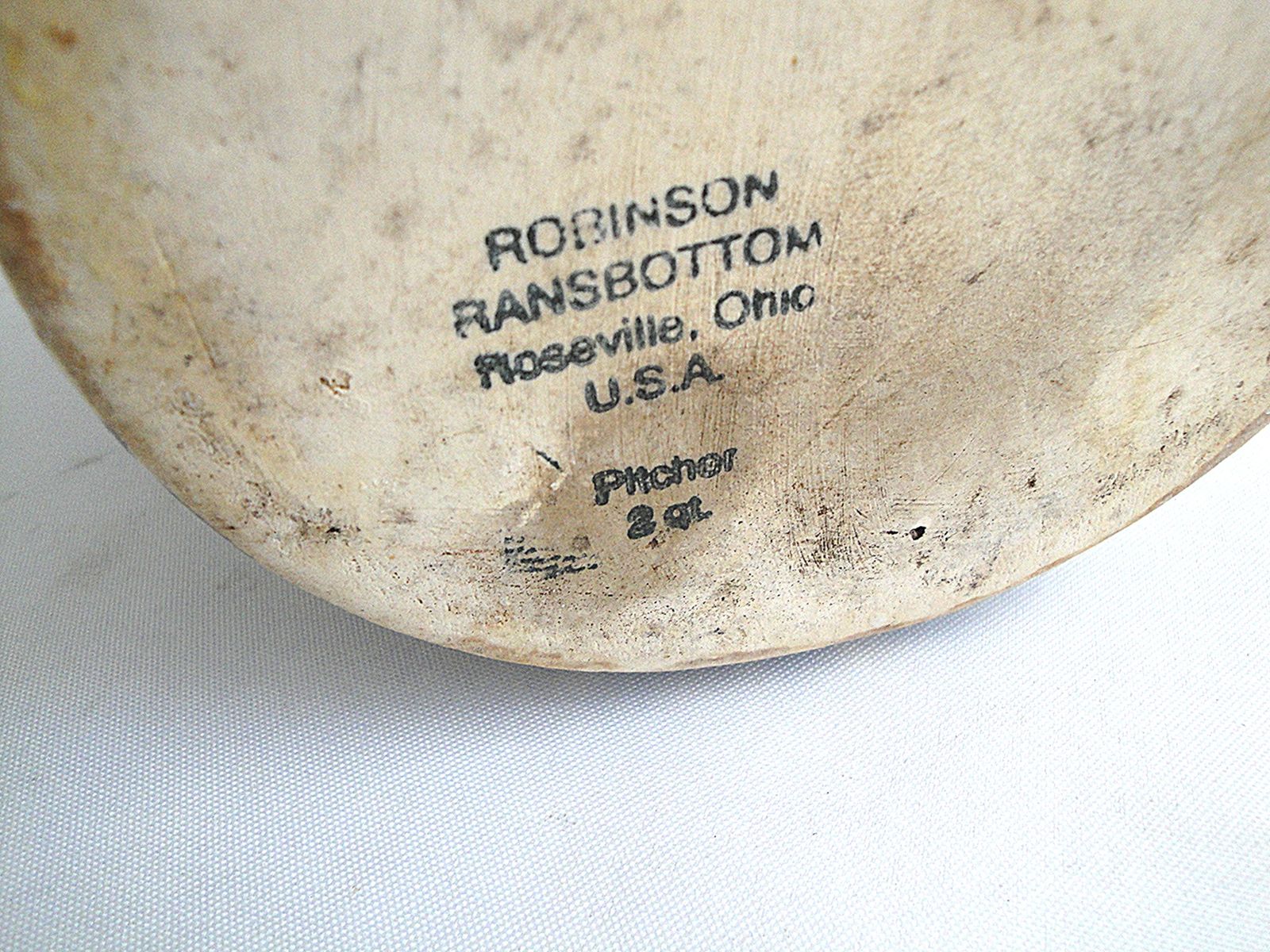 This LARGE VINTAGE ROBINSON RANSBOTTOM POTTERY STONEWARE PITCHER/VASE is perfect for serving your favorite beverages or for showing off an arrangement of seasonal flowers in your farmhouse or rustic-style home. Hand-molded by Robinson Ransbottom Pottery in Roseville, Ohio U.S.A., the exterior of the pitcher/vase features a blue spongeware pattern.