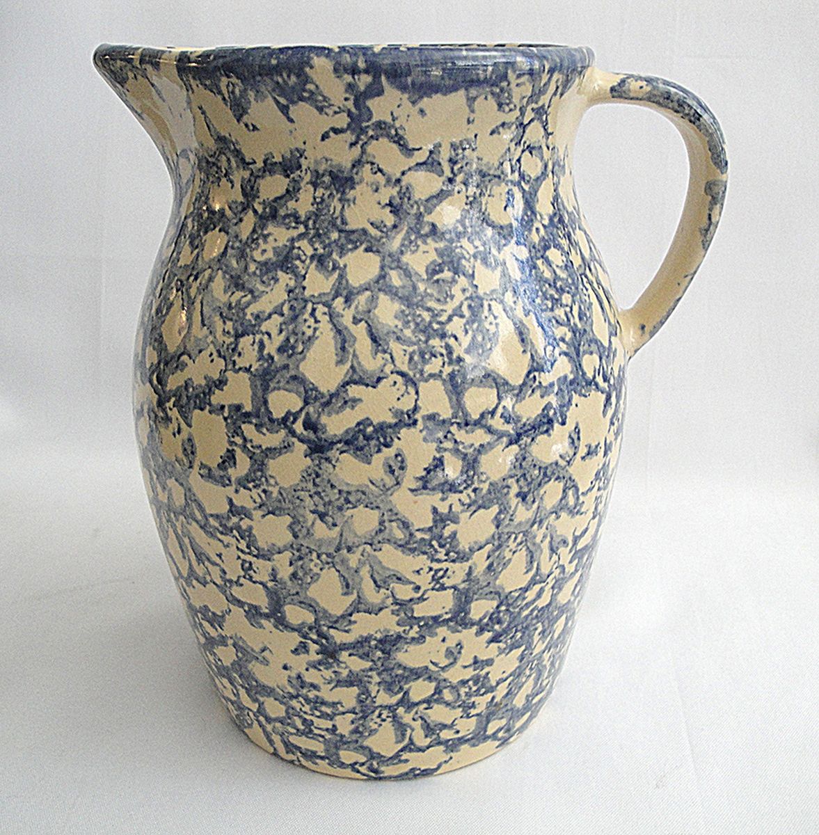 VenmoRobinson Ransbottom Pottery Vintage 2-Qt./8.75" Tall Lg. STONEWARE PITCHER/VASE with Blue Spongeware Farmhouse Home Accent Kitchen Drinkware