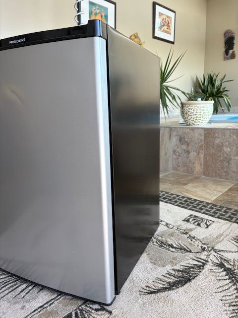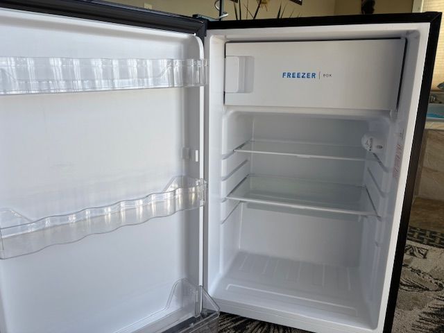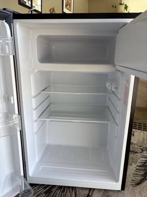 Frigidaire 4.5 cu ft mini fridge with top freezer combo. Small dent in door, but otherwise, like new. Works perfectly.