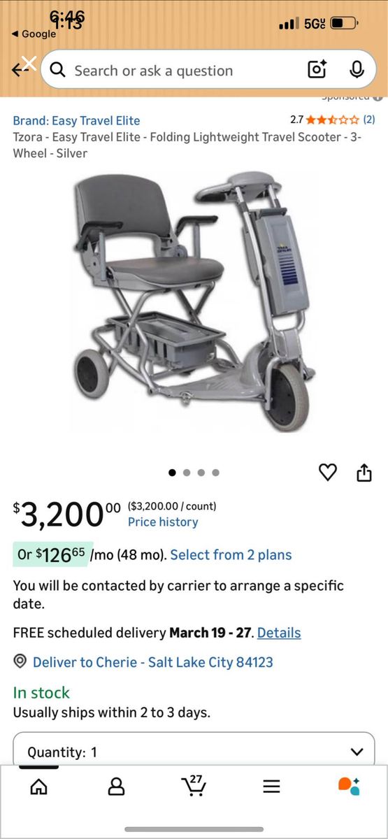 This is a folding light weight mobility scooter that has upgraded lithium battery and includes a second battery for extended travel. These are super simple to drive and to fold to put in to the car o l'm only asking a fraction of the price of new.