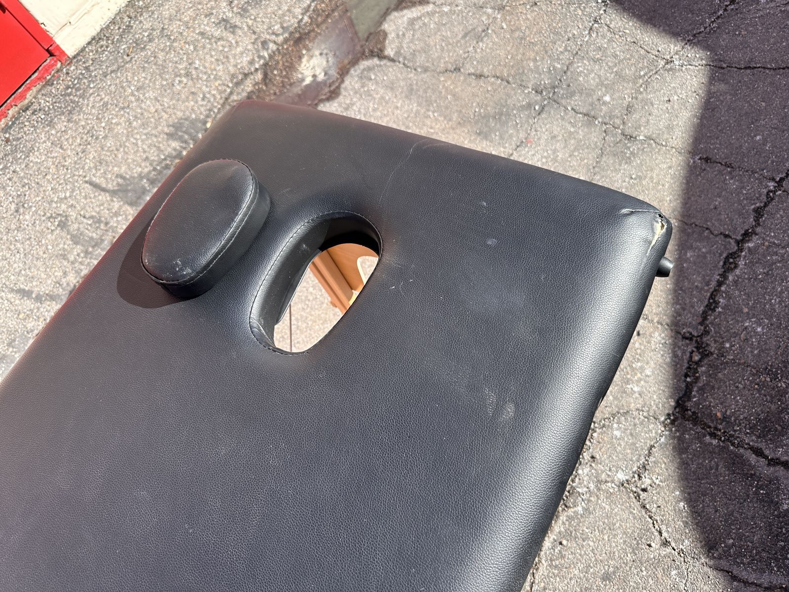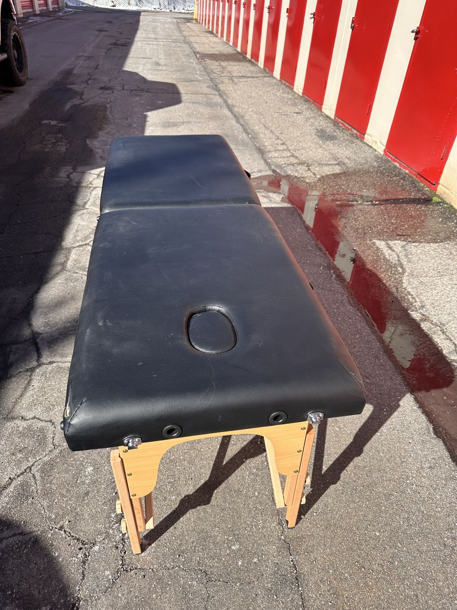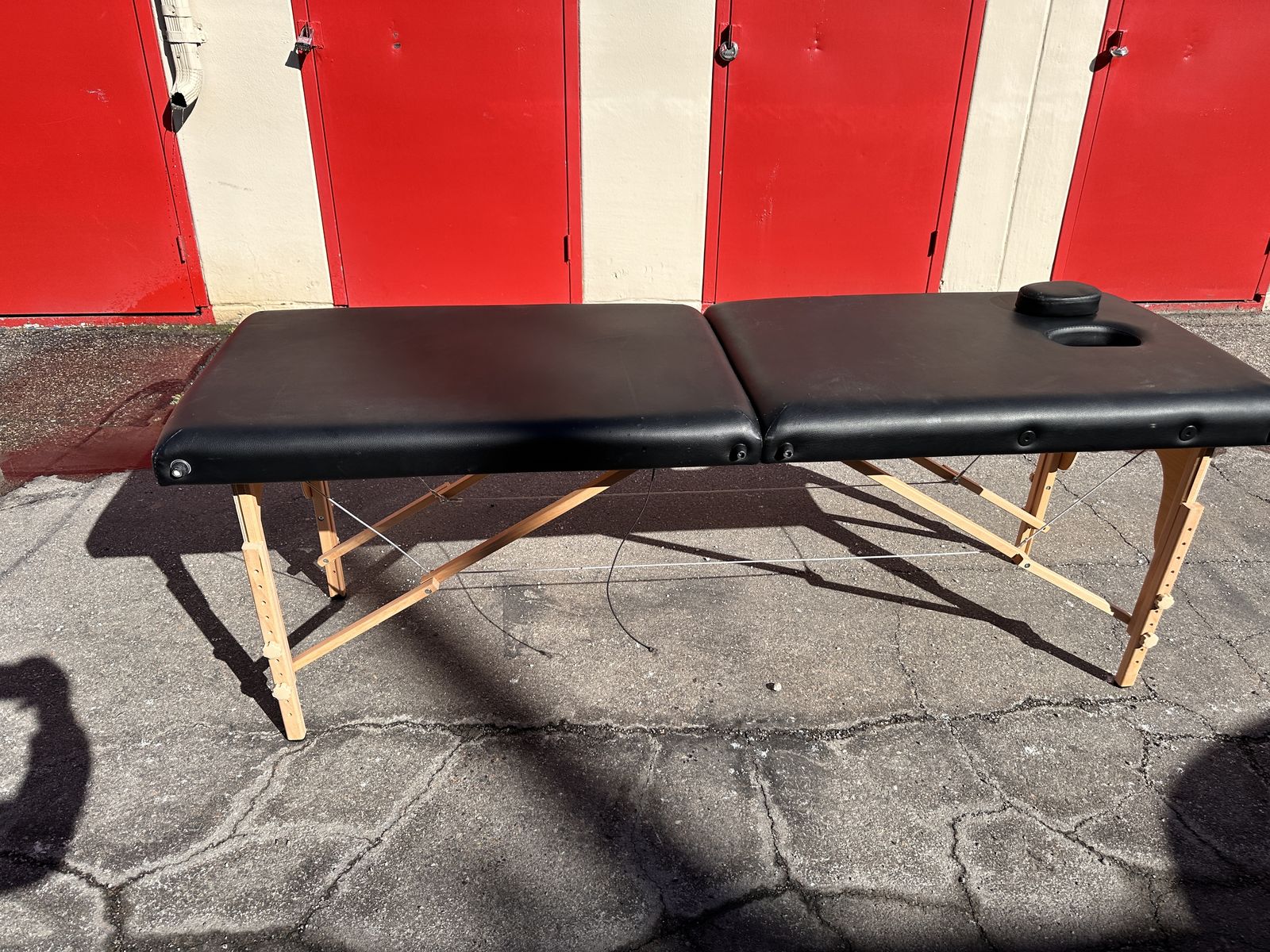 VenmoPortable folding massage table with removable face cushion. Sturdy wood frame and folds for easy storage and transport.