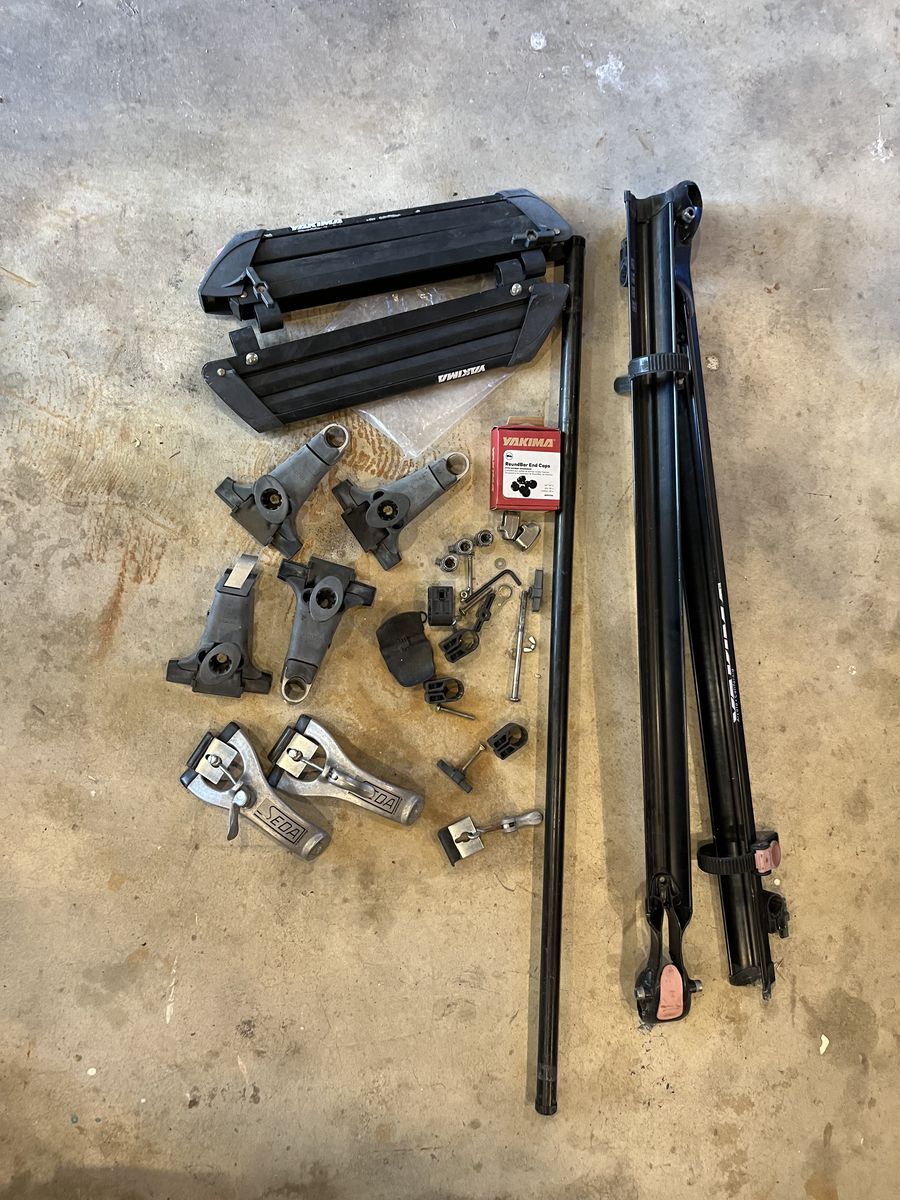 VenmoYakima rack for rain gutters with towers, one round bar, 2 bike trays.