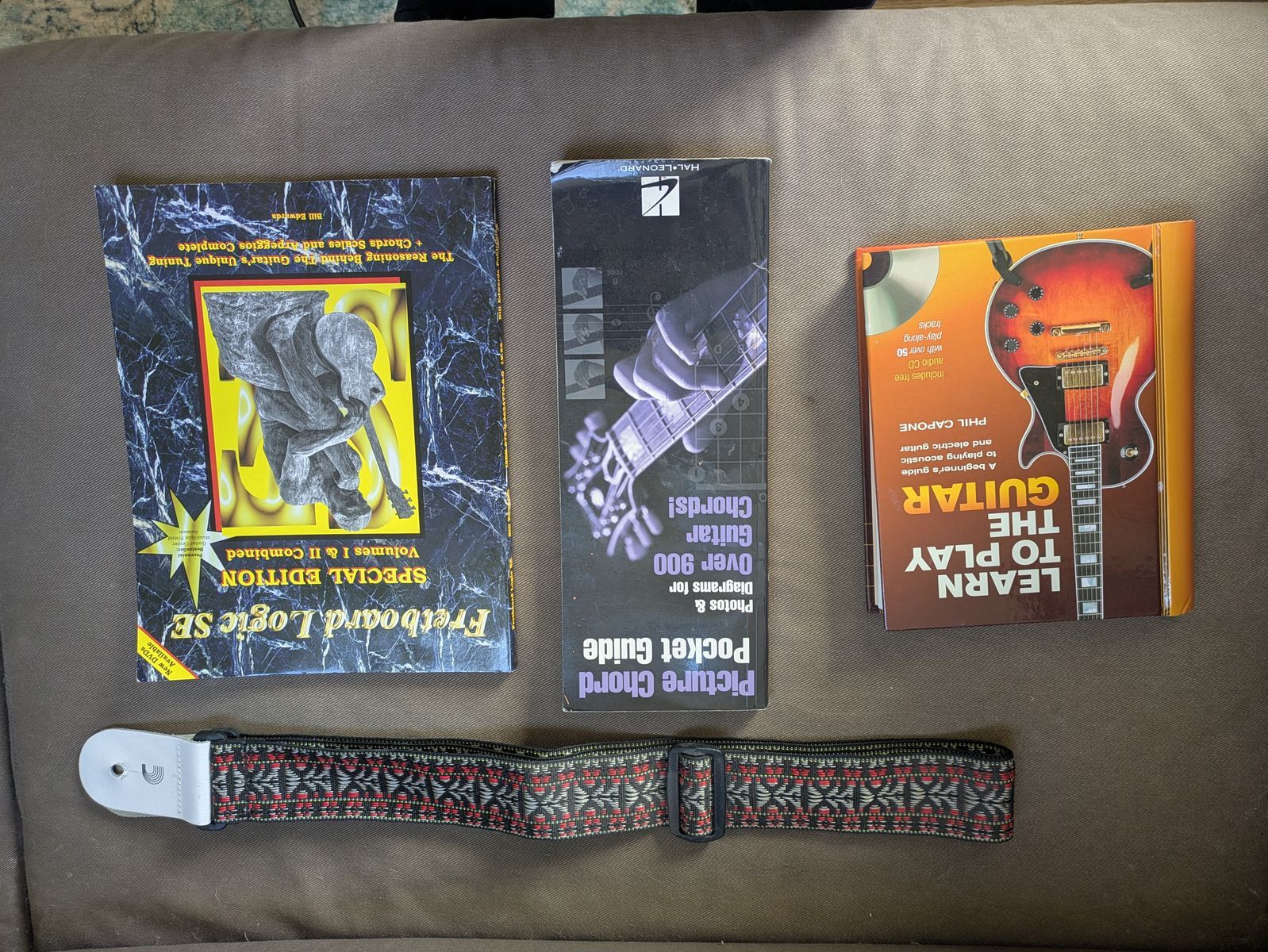 A padded backpack style case is included as well as three guitar learning books and a funky embroidered strap.