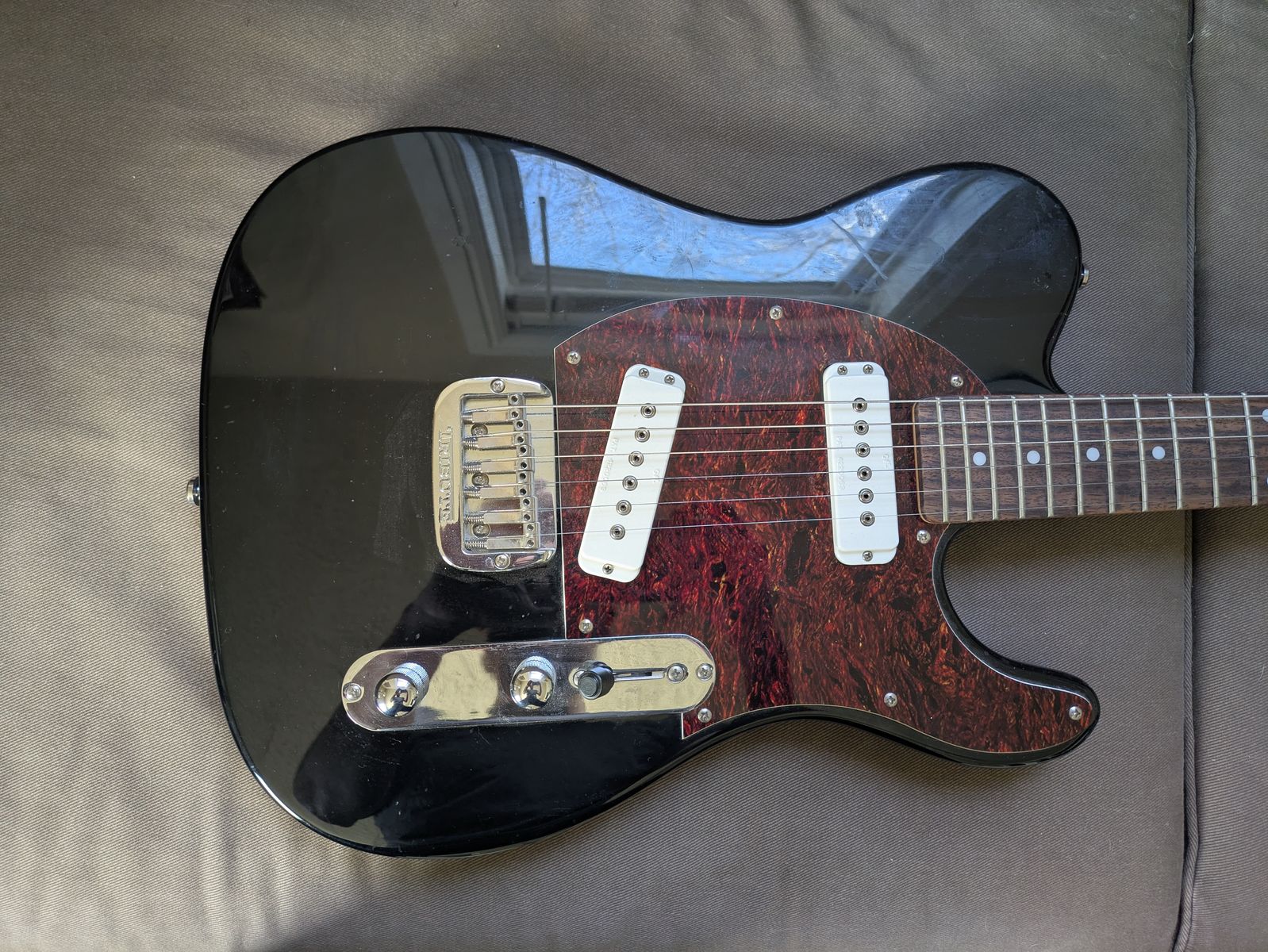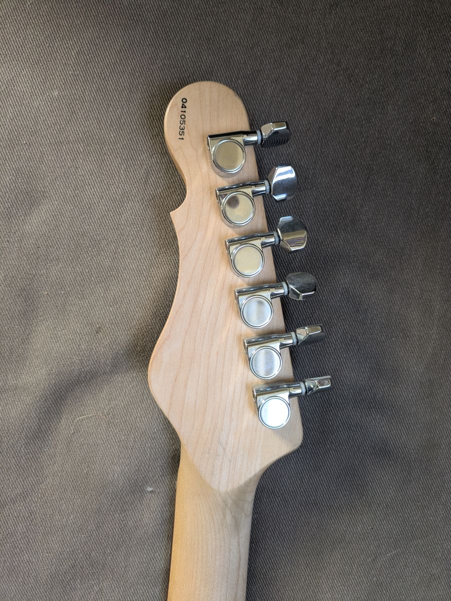 This is an excellent Telecaster type guitar suitable for a begginer or gigger looking for a great sounding guitar at a reasonable price. The guitar body is gloss black with only minor damage. It has a tortoise pickguard and rosewood fingerboard. This guitar was made in 2004 in Korea and has been kept in suitable storage conditions the entire time.