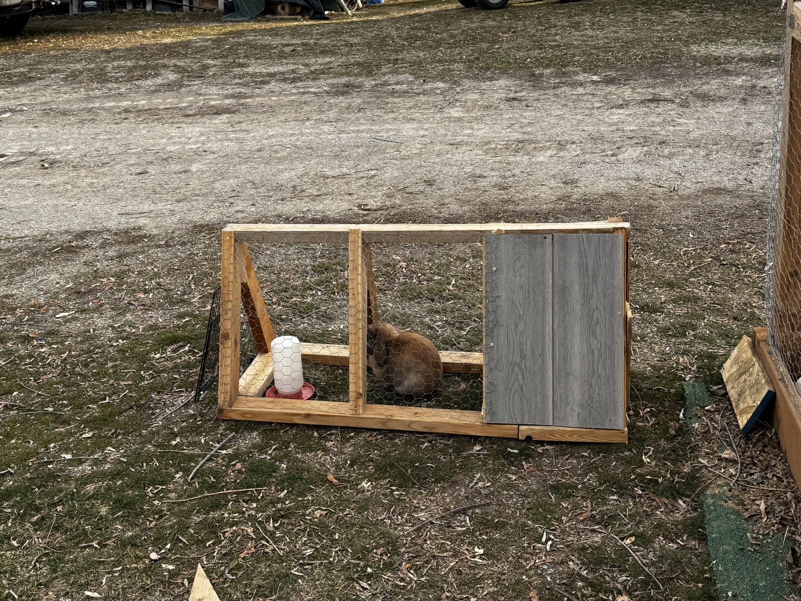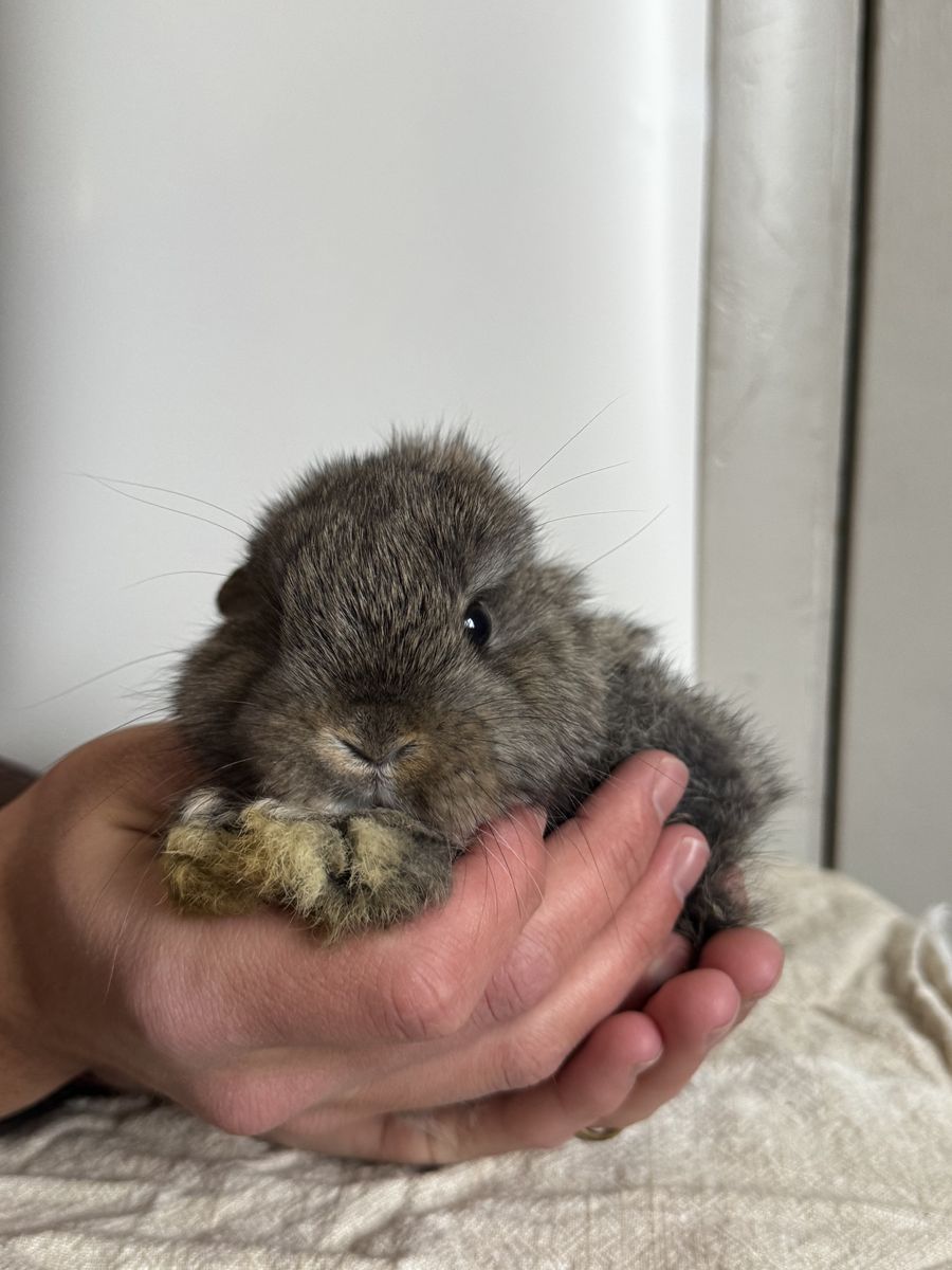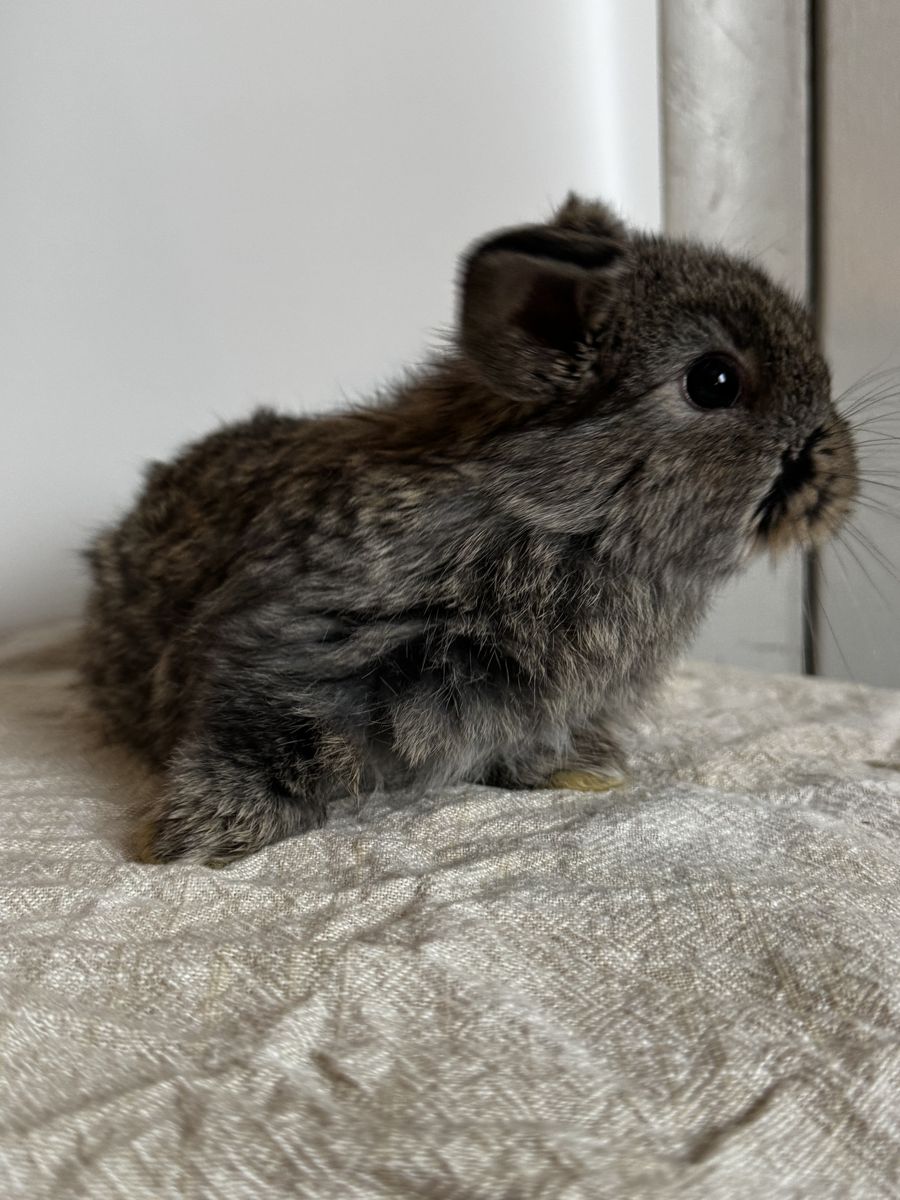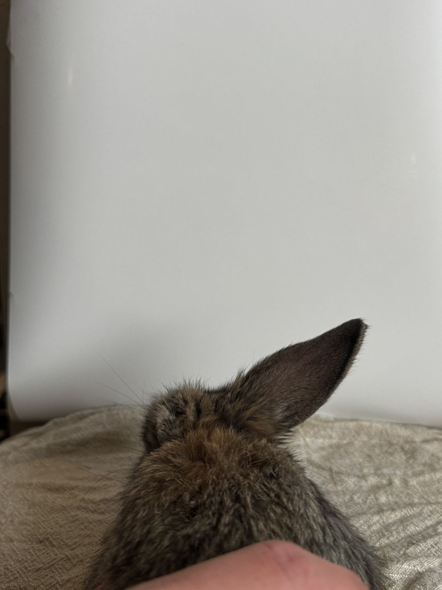 About 12 weeks old, she was born naturally missing her left ear. Handled often, comes with starter kit for food. Can come with small A-frame hutch for an extra charge. Let me know if you have any questions