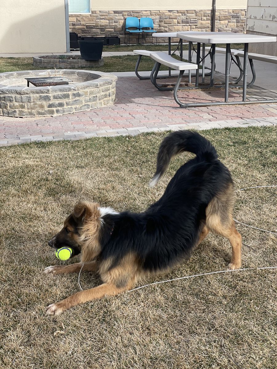 Simba is a very awesome dog that needs to find the right person to spend the rest of his life with. He is 2 years old and has a lot of years ahead of him. He is a really great dog, is super loyal and not too hyper. He does really well around horses and loves to follow when we go on horse rides. He does very well around other dogs and although he is quite dominant he never starts fights. He loves water and playing with balls and squeaky toys:) He is not hyper like a border collie but he has a lot of endurance and can run for hours, but he will stay right with you and doesn’t run off. He is very responsive to his name and will come when you call him. He’s also a great watch dog. He’s like a Aussie in a German Shepherd body:)He likes to hunt prairie dogs and chase crows.