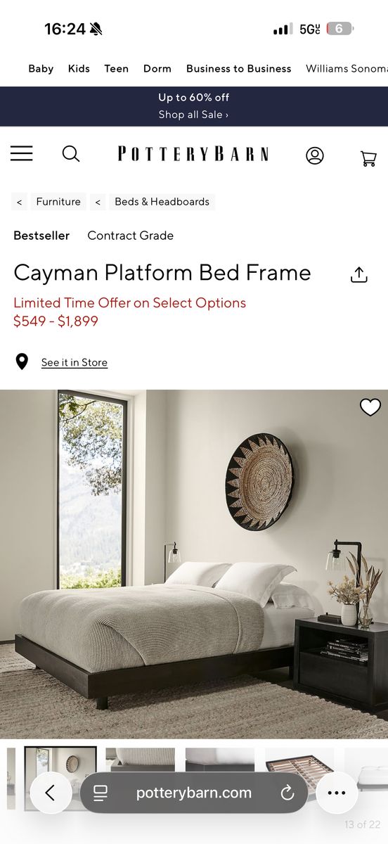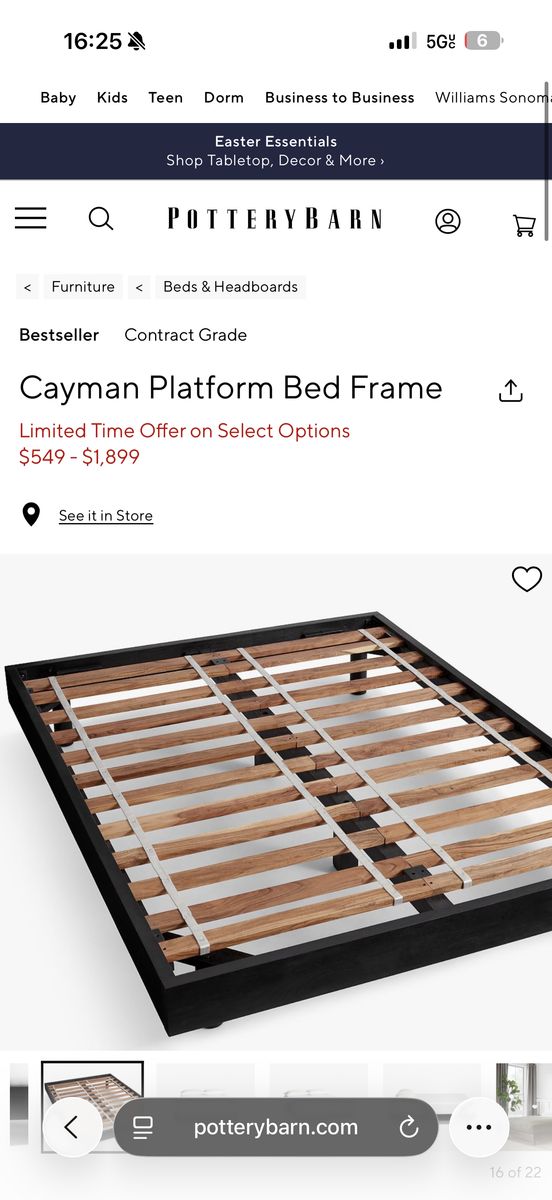 This is a high quality bed frame from Pottery Barn. Retail price ranges $549–$1,800 depending on configuration, so this is a great deal.