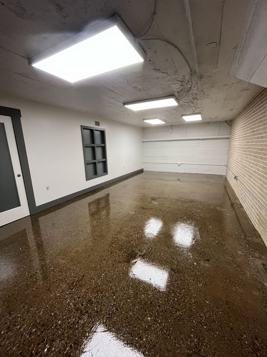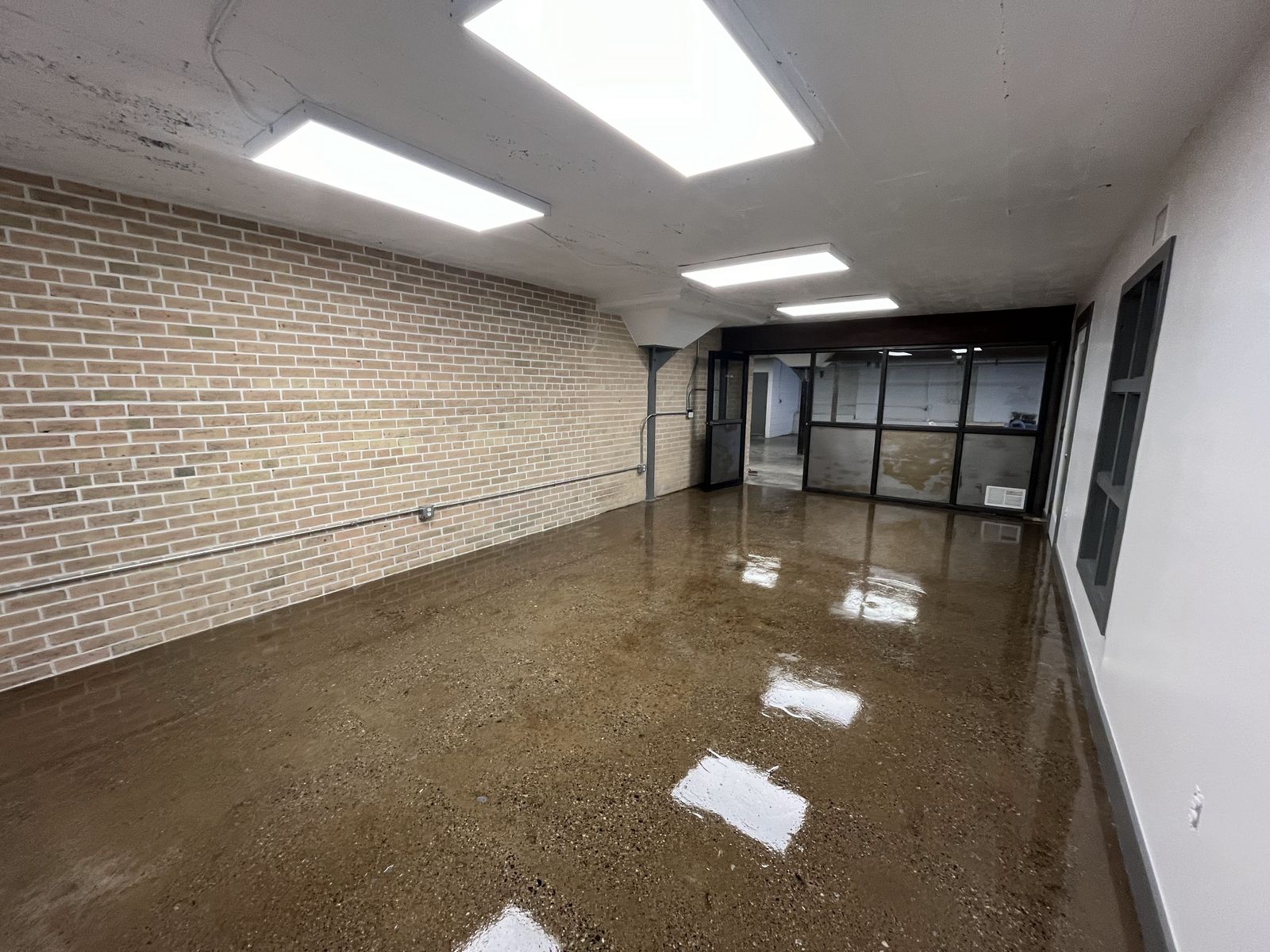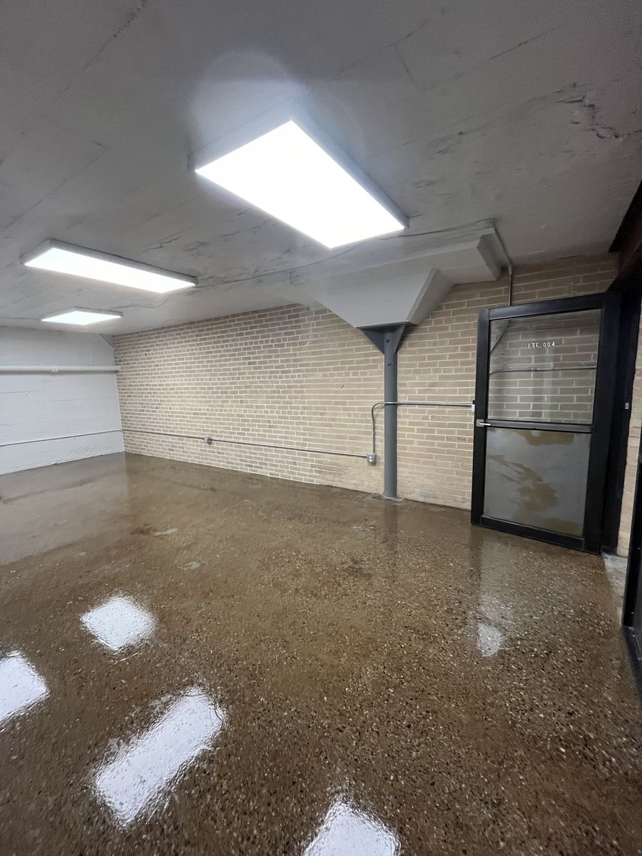 This is a great office over at the Bright Building in downtown Provo. It has cement floors, an exposed brick wall and a cool lsteel and glass front wall/door. While it does not have an exterior window it does get natural light through the front door/glass wall and through to the office windows.