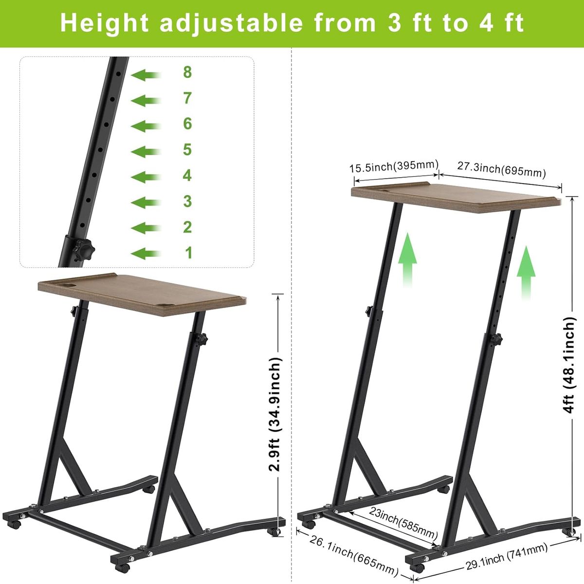 ApplePaySELEWARE Indoor Cycling Desk Height Adjustable Bike Desk Workstation Standing Desk Wooden Laptop Desk Portable Bike Trainer Fitness Desk with Lockable Wheels for Indoor Cycling Treadmill & Office Use
