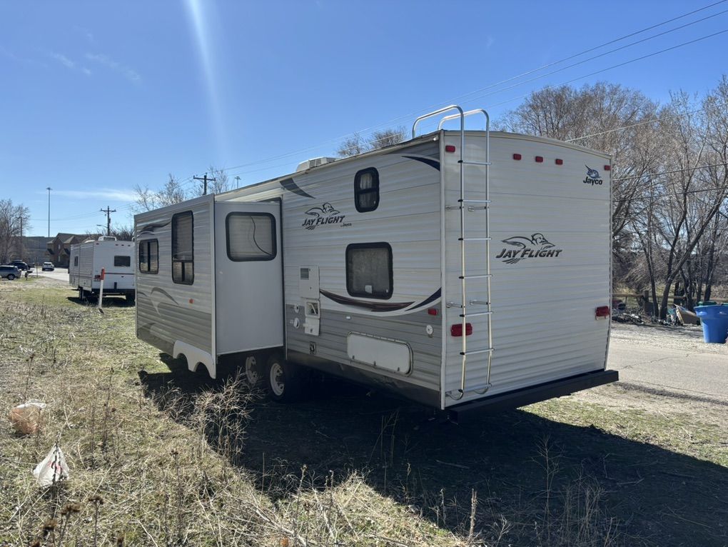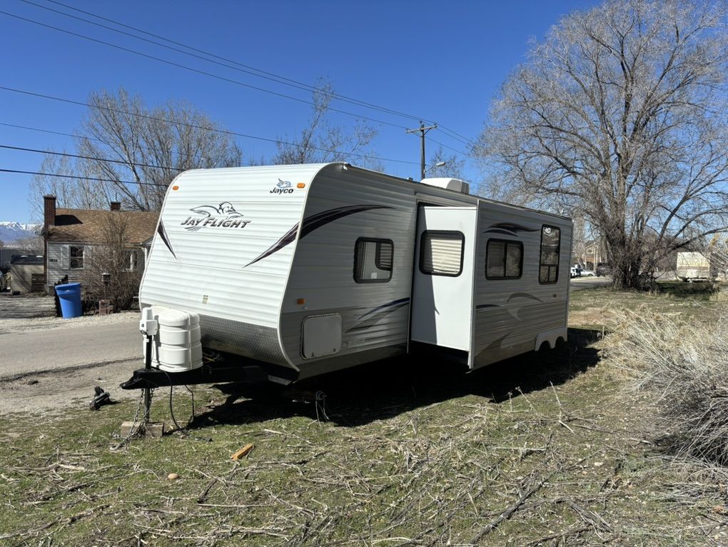 ZelleFor sale beautiful 2013 Jayco J flight sleeps up to 10 comfortably fully self-contained has electric super slide out front private bedroom rear bunkhouse in good condition inside and out. Everything works as it should no leaks no water damage no issues as newer tires and batteries brand new spare tire, clean title in hand great trailer plenty of inside and outside stor asking 8500 our best offer if interested please call or text at any time for more info please serious buyers only thank you and God bless no scams no tire kickers no time waster thank you
