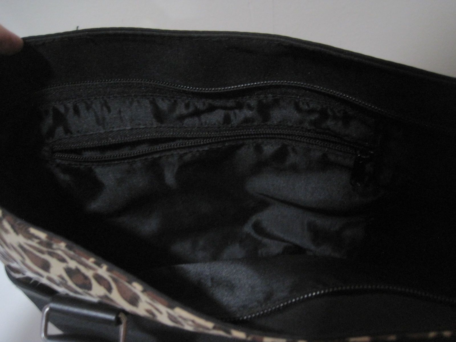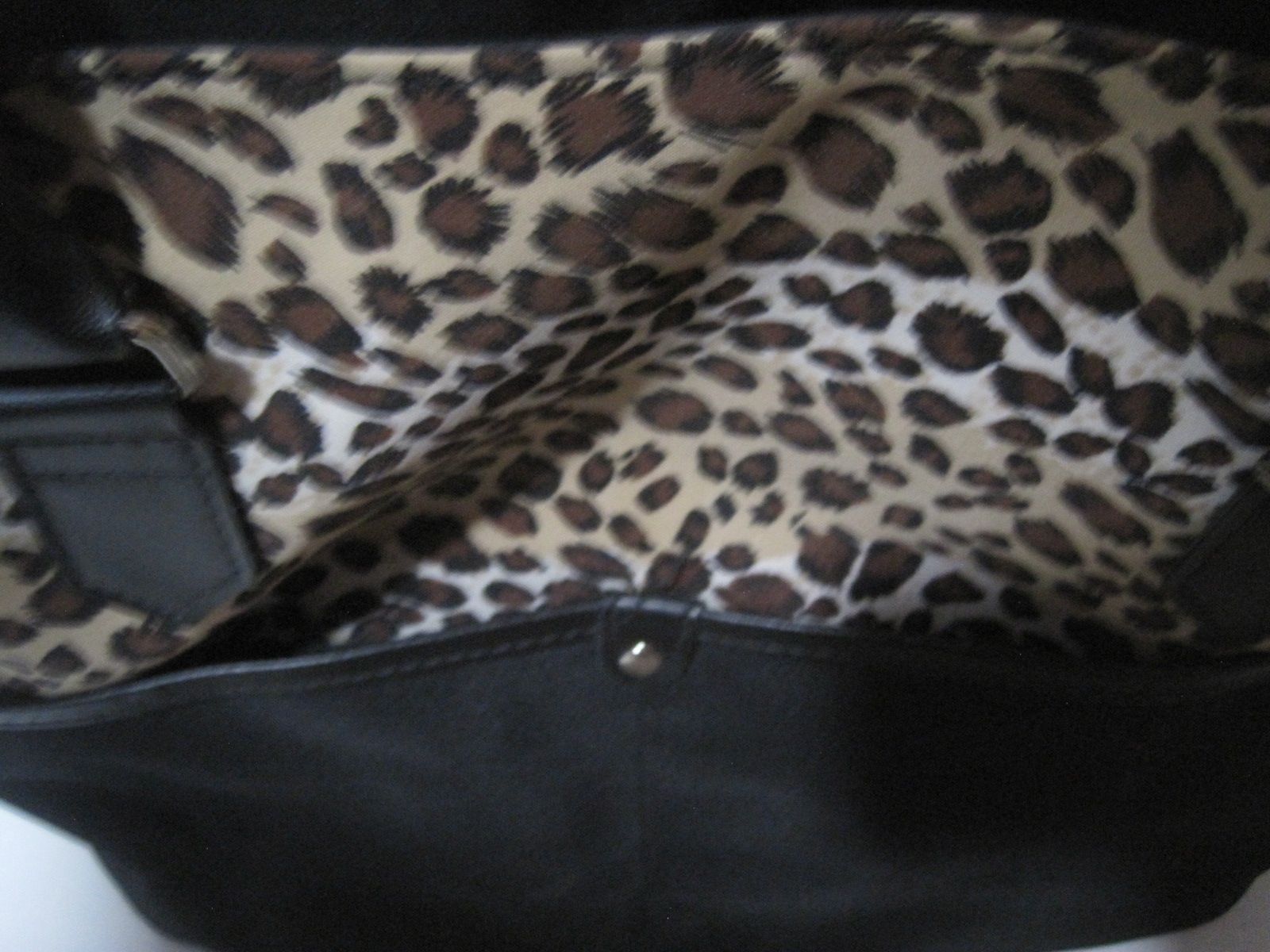 This Medium Leopard Print Black Nylon Tote Bag features faux textured leather flap handles, making it a stylish and versatile accessory for women. The rectangular shape and medium size make it perfect for travel, casual outings, and everyday use. The bag has a zip closure, inner and outer pockets for organization, and is waterproof for added durability. The black exterior with leopard print pattern adds a trendy touch to the design, while the silver hardware adds a touch of sophistication. This tote bag is both practical and fashionable, making it a must-have for any woman's wardrobe.