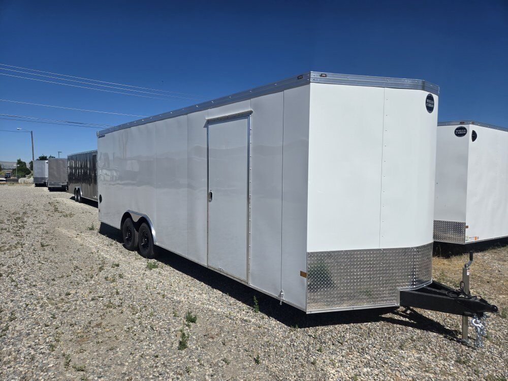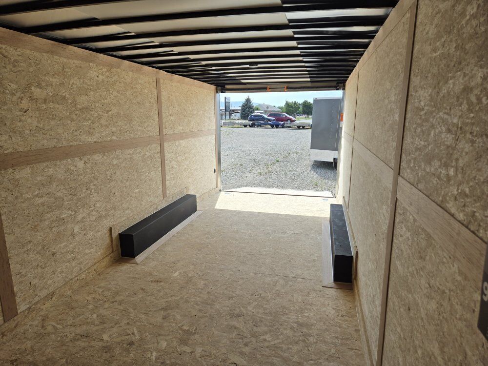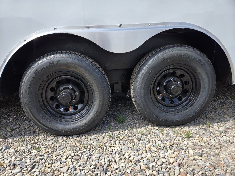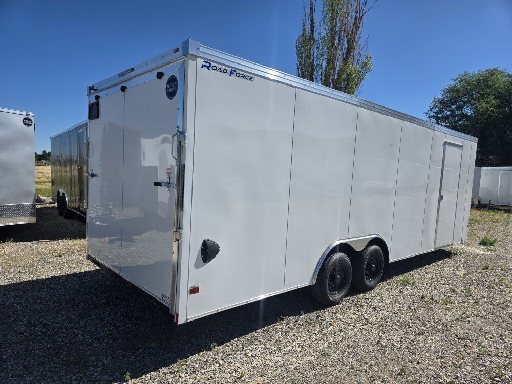 -------------------------INCLUDED UPGRADES---------------------------ROADFORCE MODEL RFV8524T3, 10K, 7FT INTERIOR HEIGHT, REAR RAMP DOOR WITH 80IN OPENING HEIGHT AND 16IN RAMP EXTENSION, 36 X 78 RV STYLE SIDE DOOR WITH RECESSED STEP, .030 BONDED ALUMINUM EXTERIOR ((( NO SCREWS ))) 16IN ON CENTER FRAME ON WALL, FLOOR AND ROOF, 4 FT REAR BEAVERTAIL, RHINO LINED FRAME, FENDERS AND REAR LOOP, 3/4 INCH PLEXCORE WATER RESISTANT DECKING. SUPERIOR TO PLYWOOD. 3/8 INCH PLEXCORE INTERIOR WALL LINER, TANDOM 5200 # DEXTER AXLES, 10,000 # GVWR 225/74 R 15 8 PLY RADIAL TIRES, 2-LED INTERIOR LIGHTS WITH WALL SWITCH, 4-5000# RECESSED D-RING TIE DOWN, ------------------------STANDARD FEATURES----------------------- V-FRONT, BULL NOSE DESIGN, BRAKES ON ALL WHEELS, ALL LED LIGHTS, RADIAL TIRES, 1 PIECE ALUMINUM ROOF, EZ LUBE HUBS, AND MORE. COLORS AVAILABLE-SILVERFROST, WHITE AND CHARCOAL GRAY.