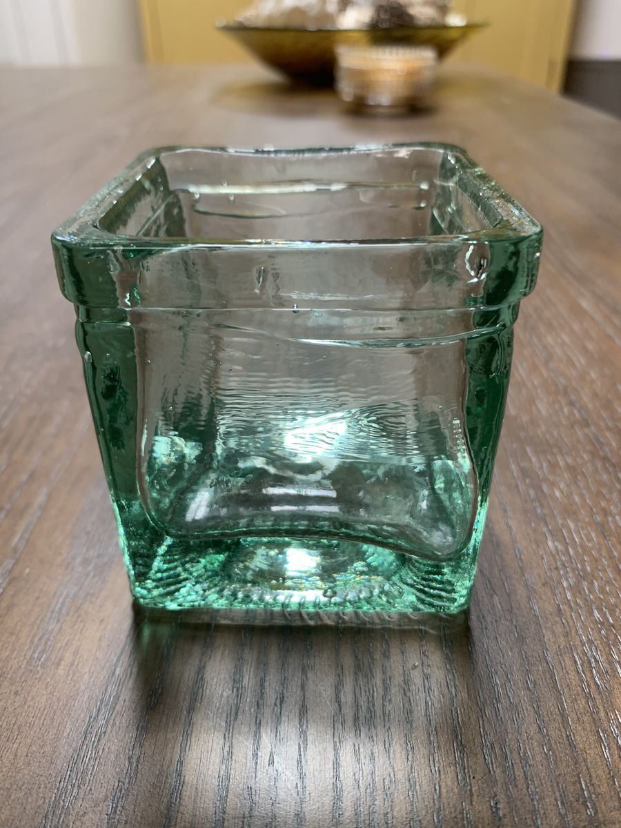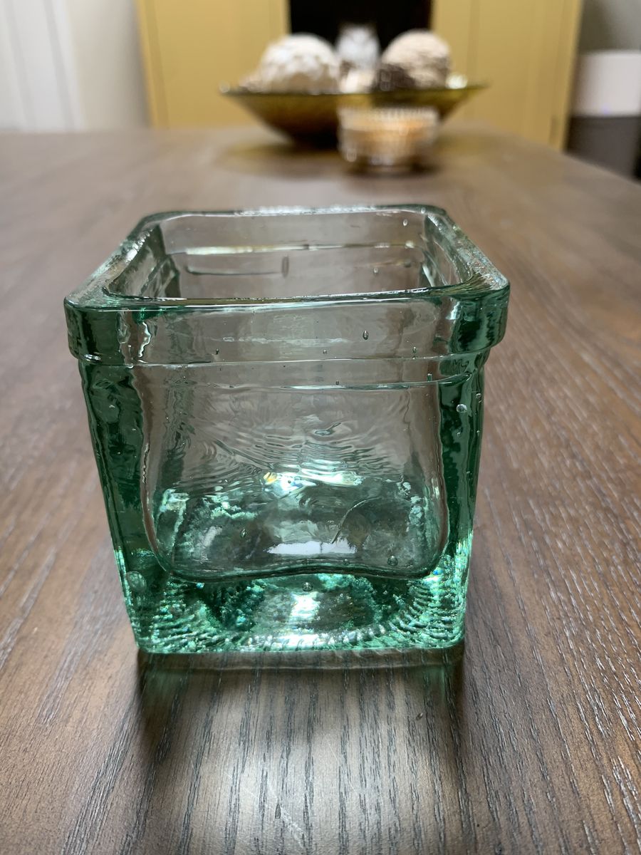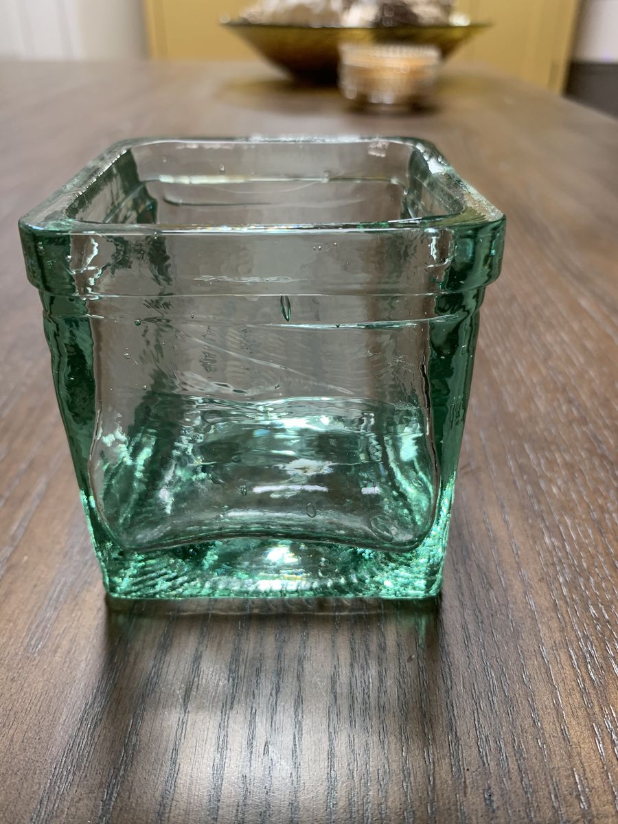 VenmoThick glass and sturdy. This 3” recycled glass candle holder/jar is from Spain. The bubbles in the glass make it elegant. Clean and ready to go. Venmo or Cash. Venmo to hold. Non-smoking/No pet home.