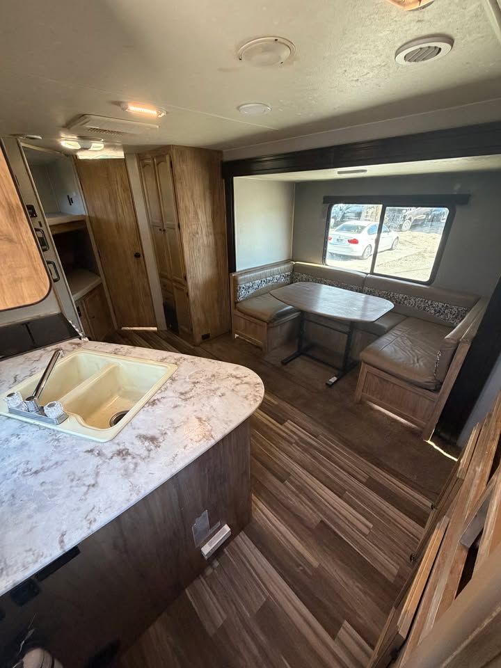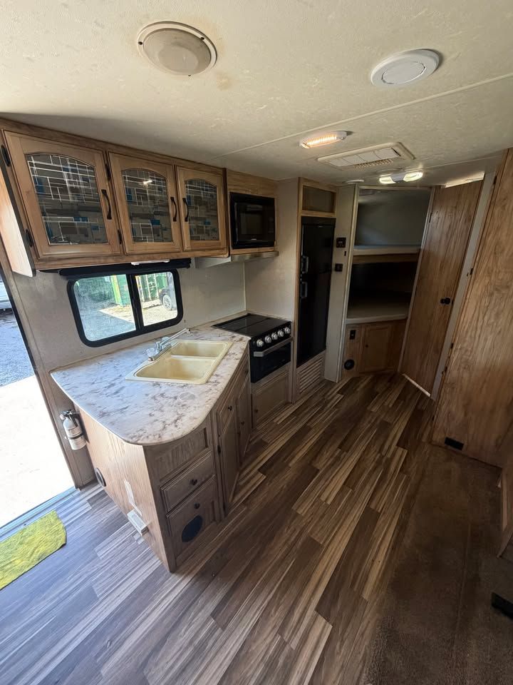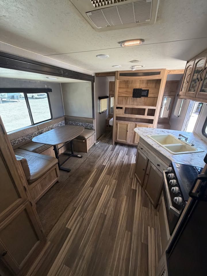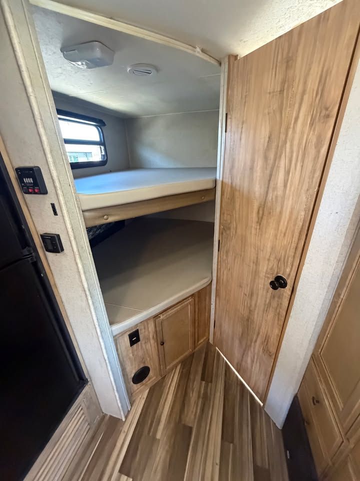 -All fiberglass skin -Front electric jack -Electric awning -4 seasons -Insulated and enclosed underbelly -Full walk on rubber roof -Tons of storage -U section dinette/bed -Double bunk beds -Front walk around queen bed -Sleeps up to 8 -Stove/oven -Microwave -Full water system -Central duct AC -Central duct furnace -Gas/electric fridge -6 gal gas/electric water heater