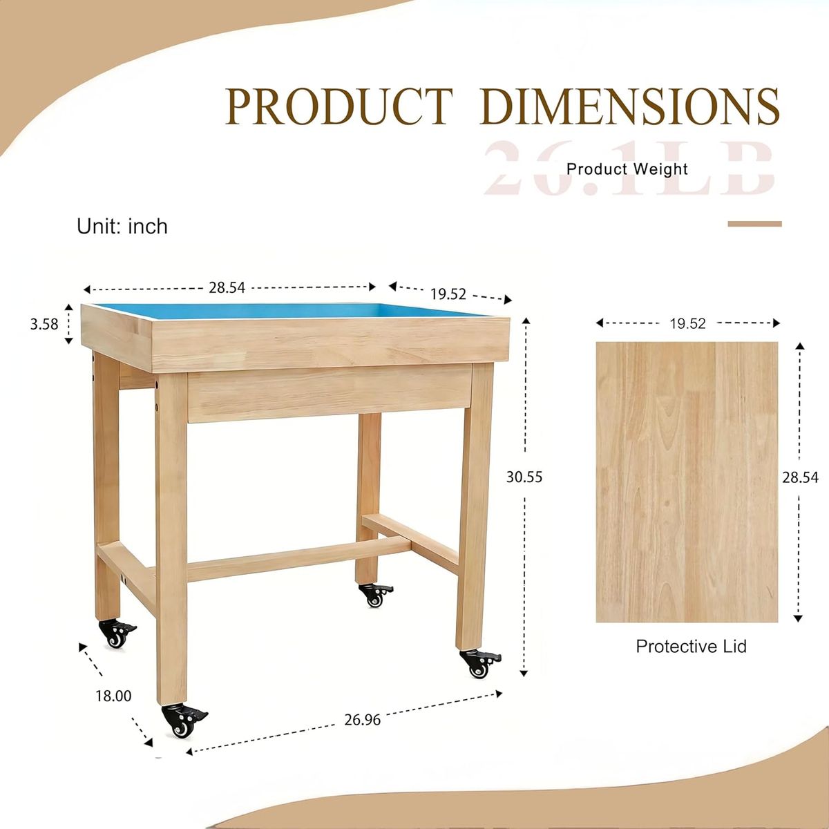 ApplePayWooden SandTray Combo – Includes a Protective Lid, a Wooden Stand, and Lockable Wheels | Ideal for Therapy Offices, Classrooms, and Home Use