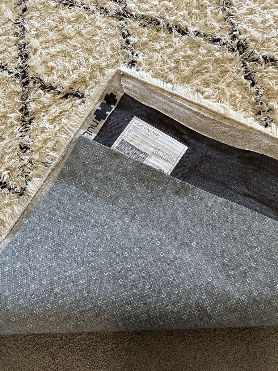 ApplePaynuLOOM urbanized 5’x7’ shaggy area rug. Ivory and gray. Diamond design. Clean, no stains. Well kept. Under pad to help it stay in place included.
