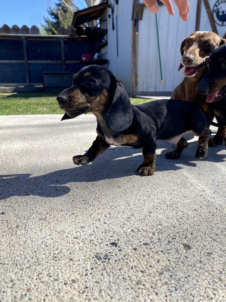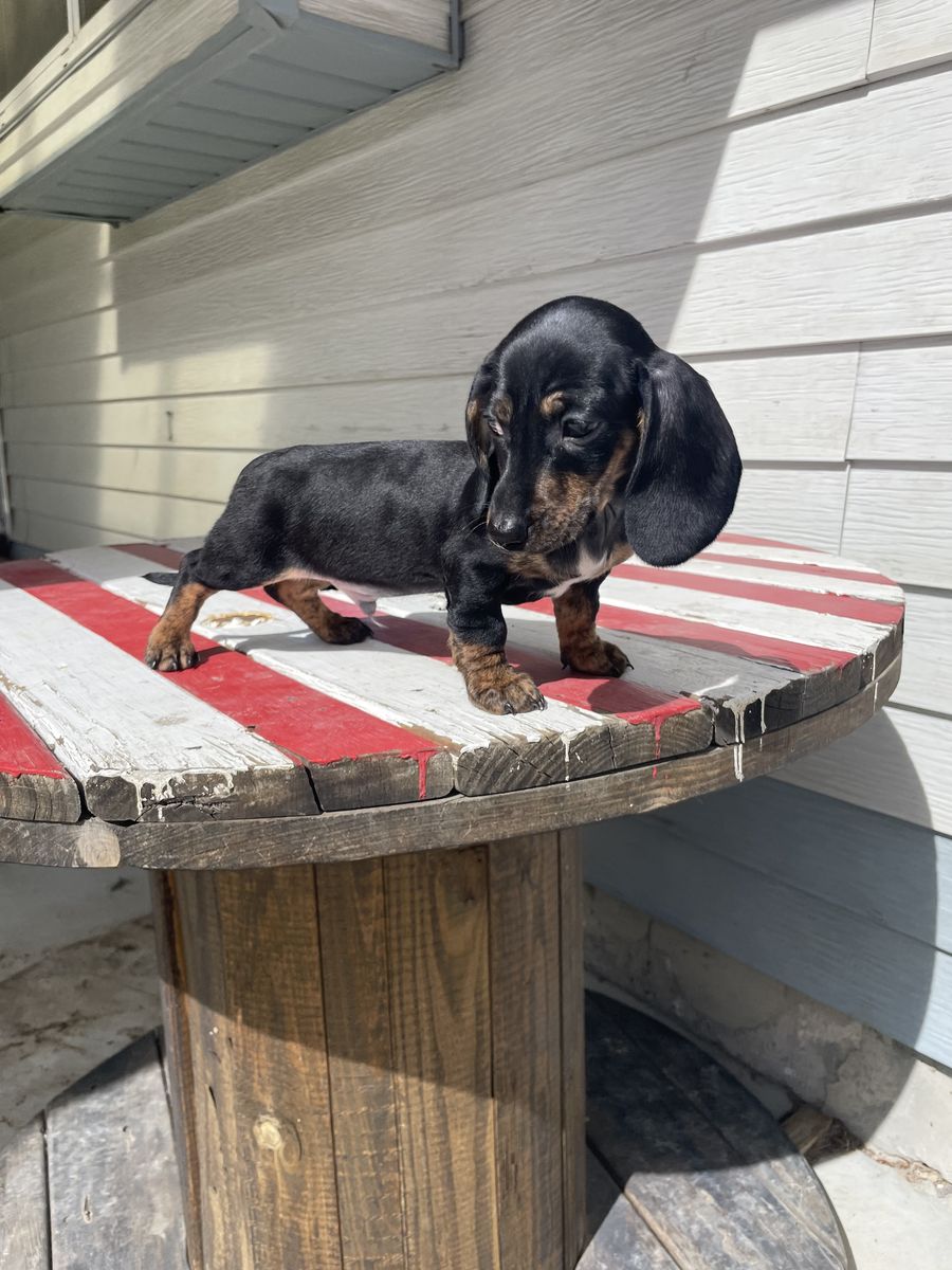 Considered mini dachshunds. Mom is 12lbs & dad is 10lbs (pictured). Born on January 17th. 1 male left