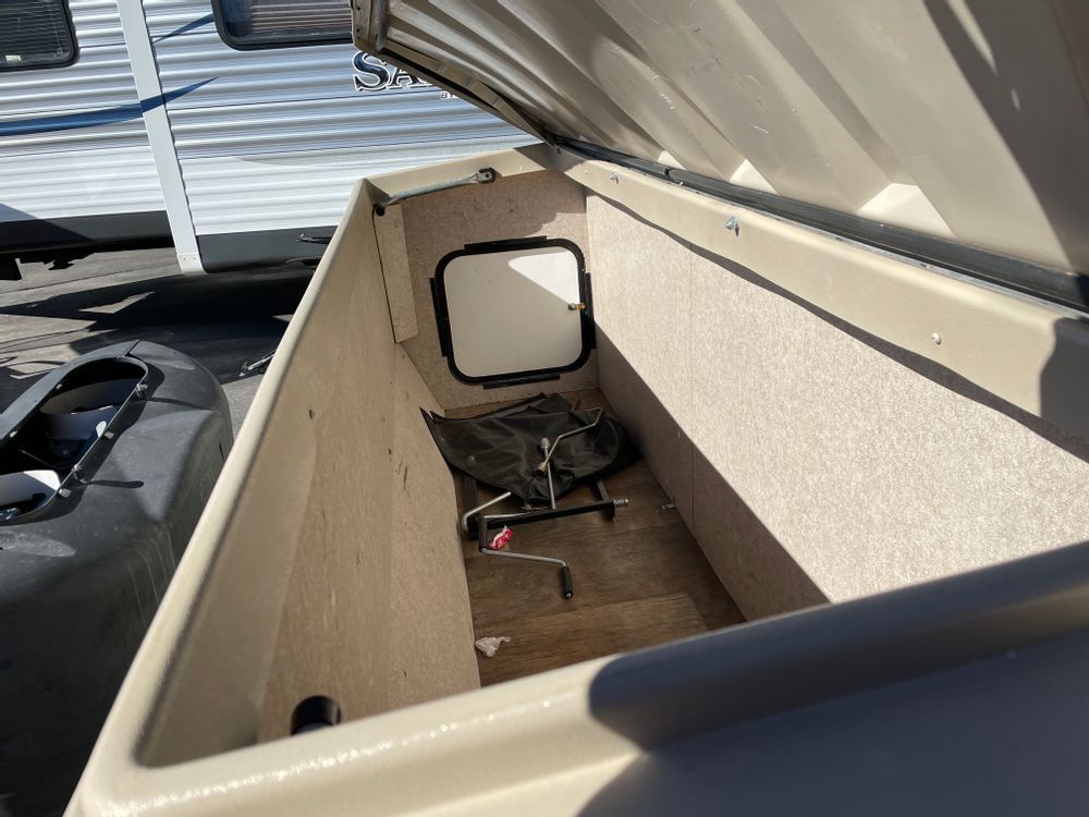 Front deck storage and EZ reach storage trunks, Outside shower, Electric jack, Front dinette that folds down to a sleeping space, Sink and 3 burner stove, Microwave, Air Conditioner and fan, Queen size bed in rear, Stereo system with outside speakers,