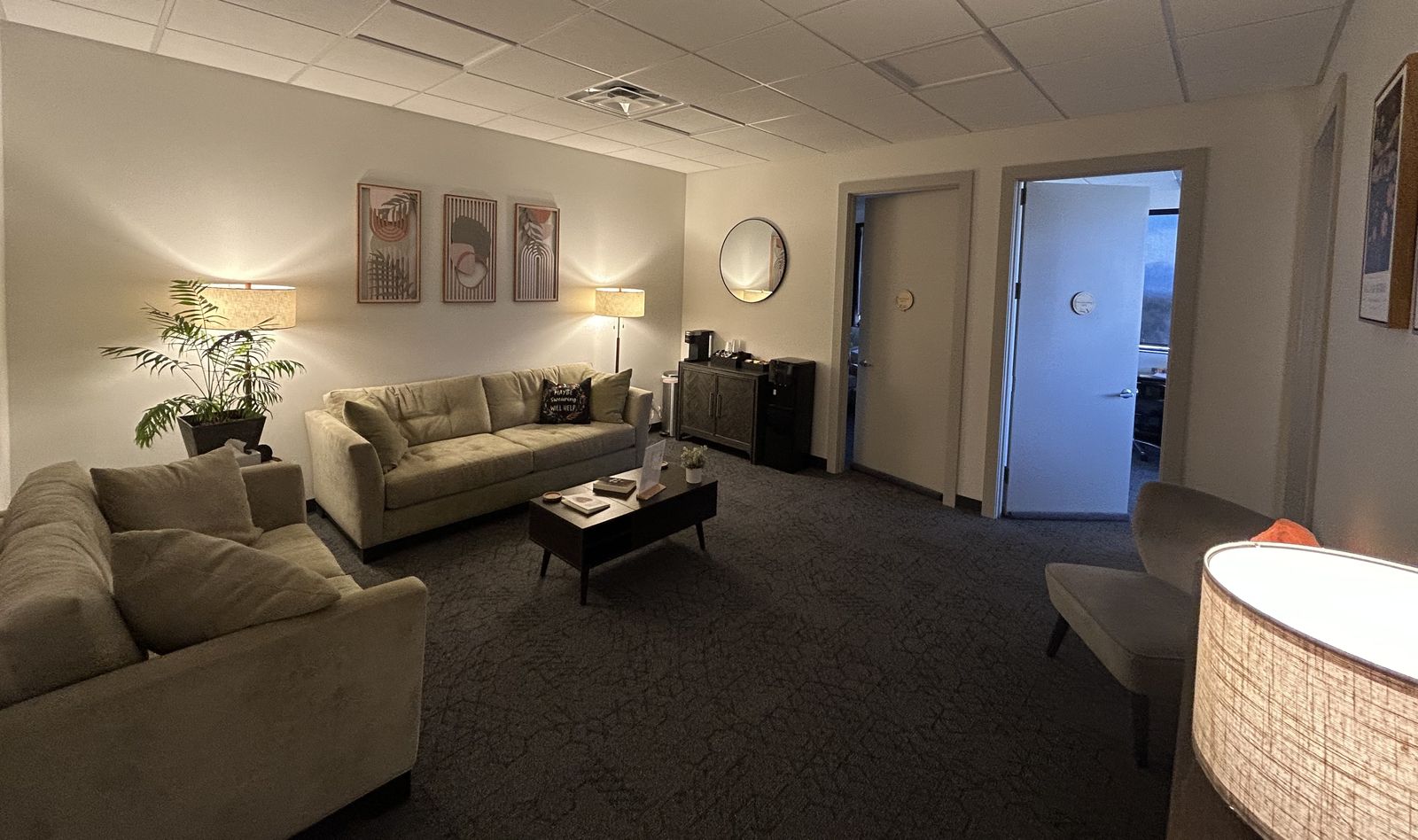Features: • Large shared waiting room for clients • Quiet suite currently occupied by two therapists • $735/month includes internet, utilities, and shared lobby maintenance • Building includes many therapy and wellness offices with strong referral potential • Collaborative and referral-friendly environment among clinicians • Optional furniture available for purchase if desired • Comfortable setup for individual or couples therapy