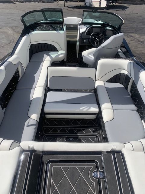 This 23’ Alpha seats 16 and is the ultimate surf and wakeboard boat—engineered for big wakes, smooth surf waves, and luxury on the water.