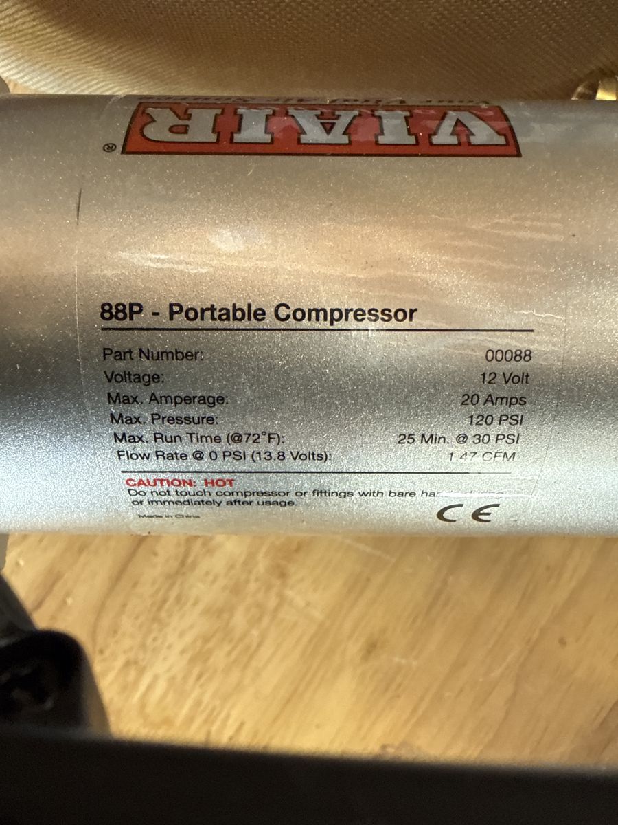 VenmoVIAIR 88P - 00088 Portable Compressor Kit with Alligator Clamps, Tire Inflator, Tire Air Pump, 12V, 120 PSI, for Up to 33 Inch Tires. Brand new. Never been used. Perfect shape. Great for airing up and deflating for off-road adventures. $89 new, discounted to $75.