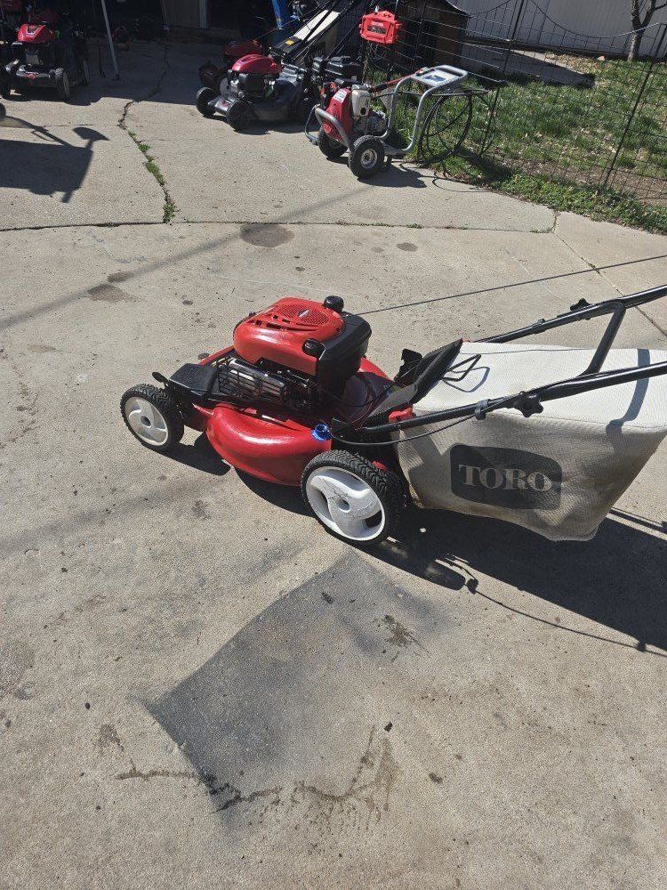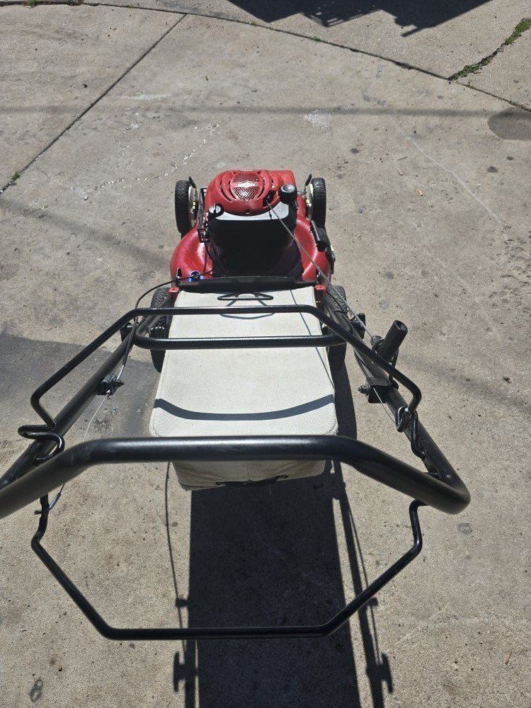 Fully gone through, new carb, air filter and spark plug. Fresh service including oil change, and sharpened blade! Briggs and Stratton 6.5 Power plant, self propelled, ready to mow!