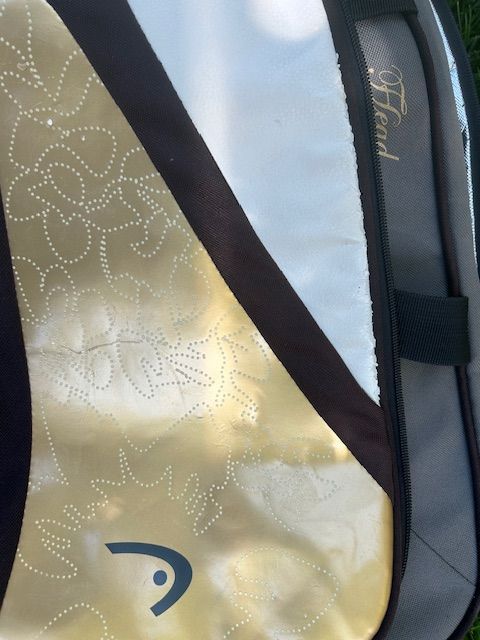 Venmo$20 OBO. This is a used, but in near perfect condition, Head oversized tennis bag. It comes with many pockets and storage to hold anything you need to bring. It is leather and has amazing stitch work patterns. It has a shoulder strap as well as the regular hand carriers. Let me know if you have any questions. The best way to get me is with a text, because I cannot always answer my phone.
