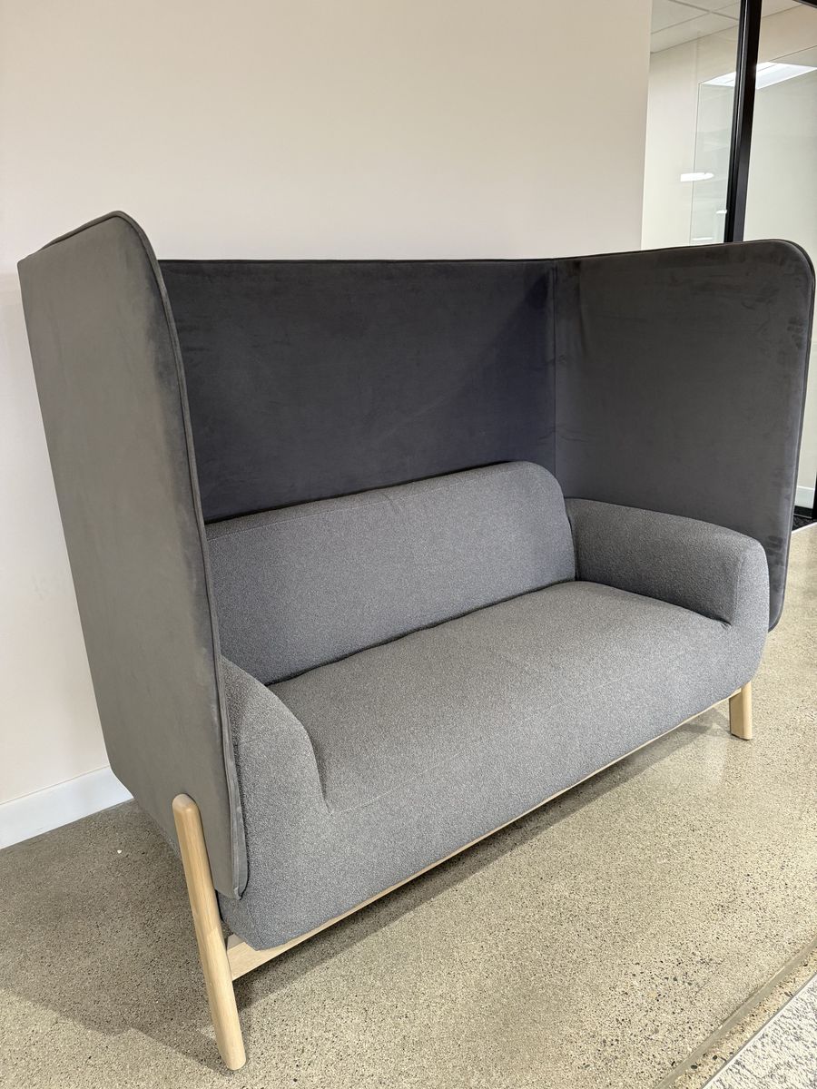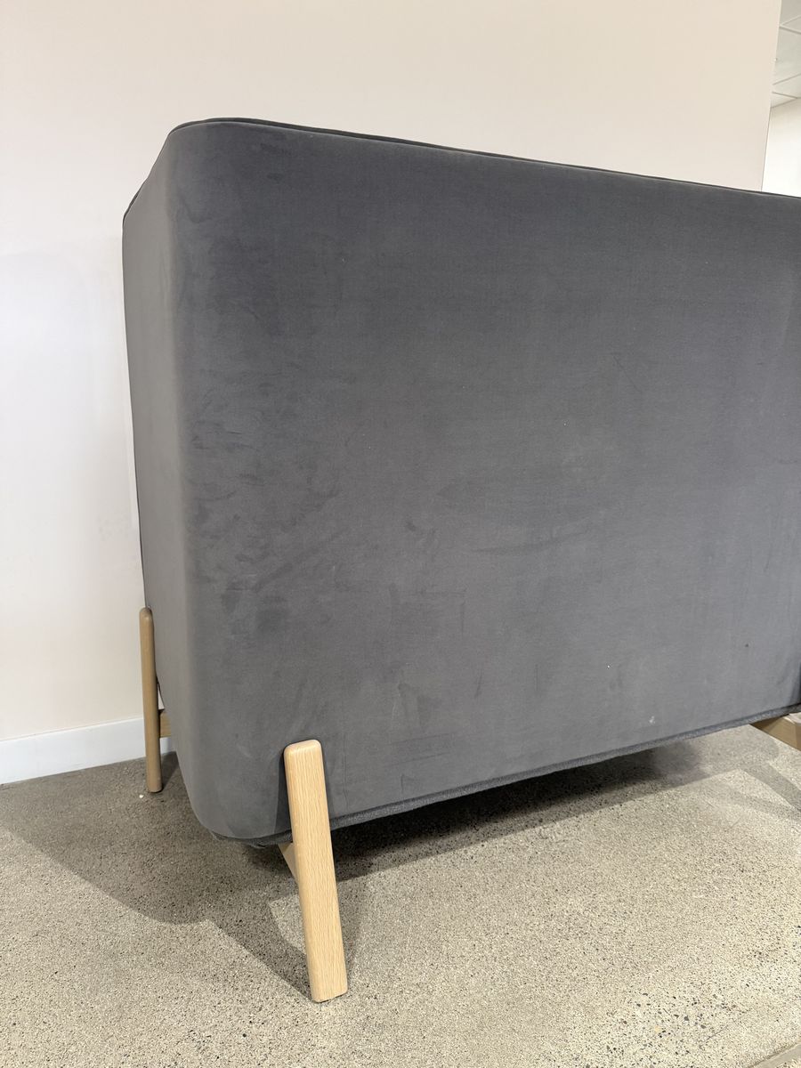 VenmoCharcoal Gray loveseat high highback screen, white oak base.