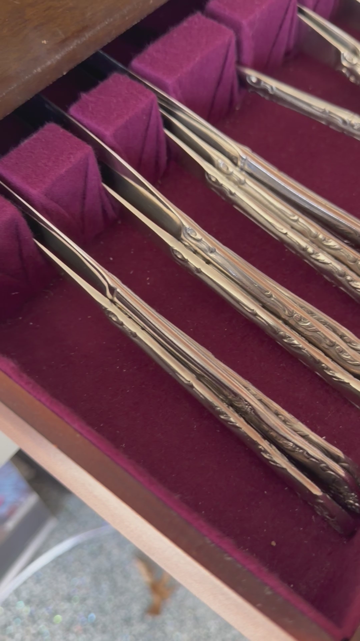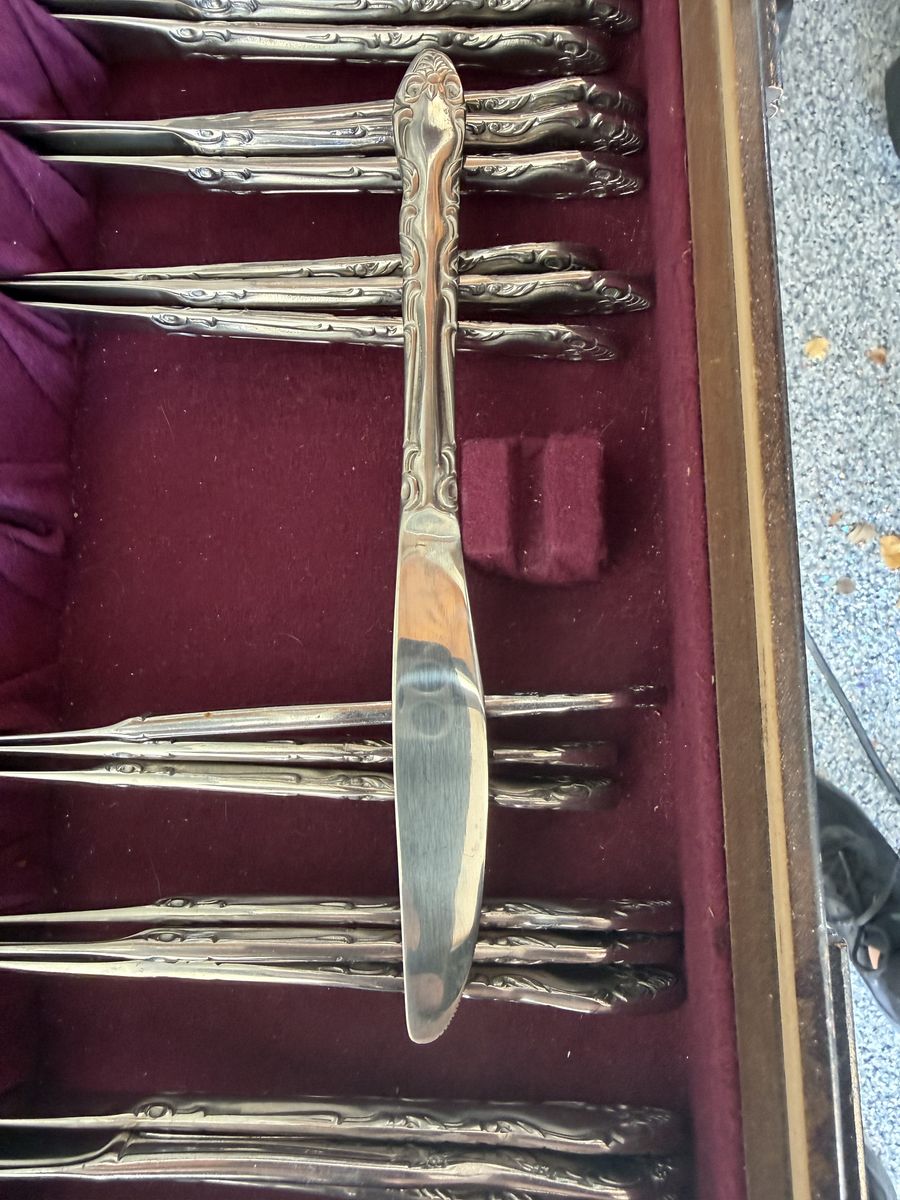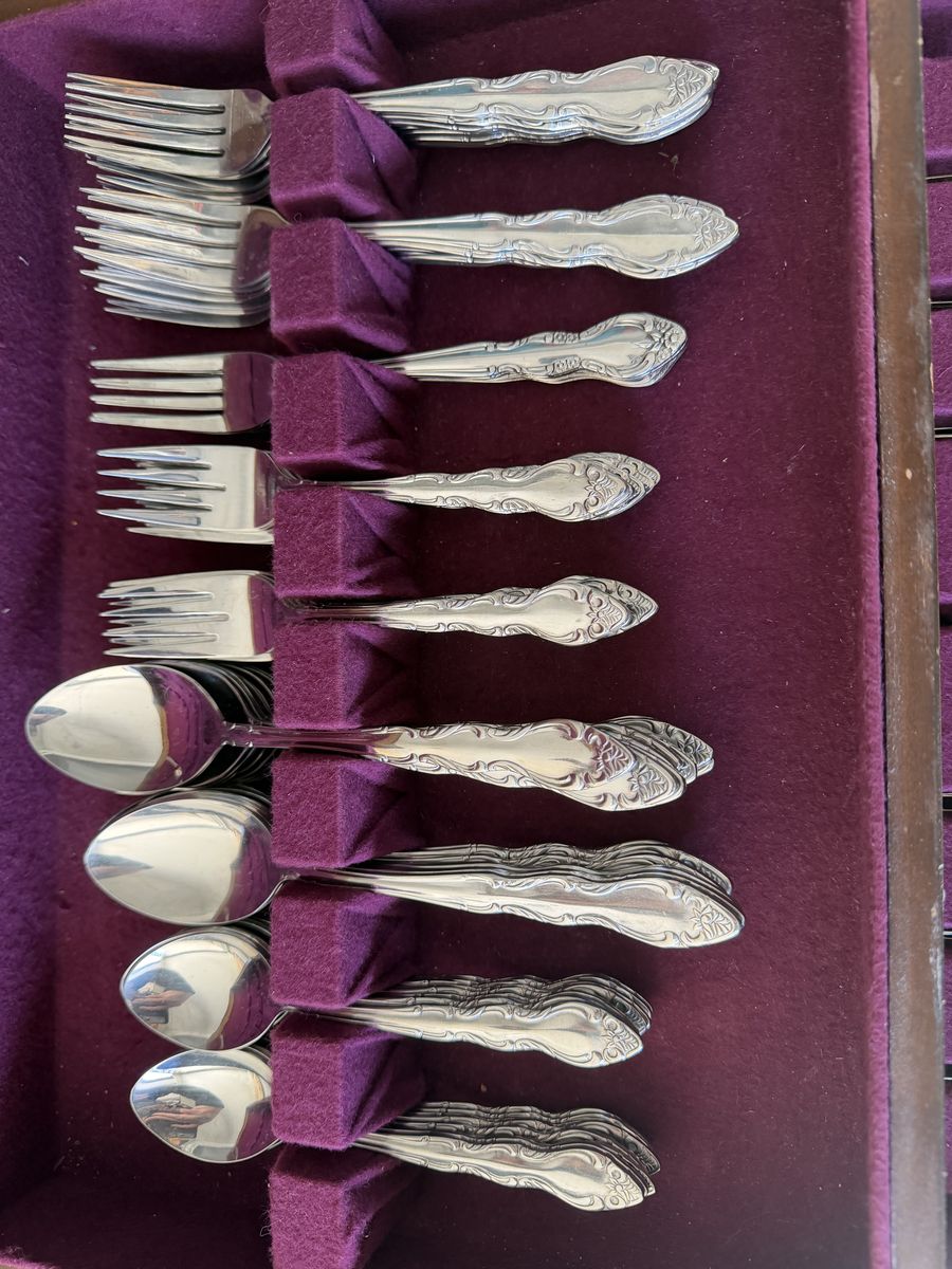 19 knives, 16 dinner forks, 4 salad forks, 18 dessert forks, 18 tablespoons and 18 teaspoons!