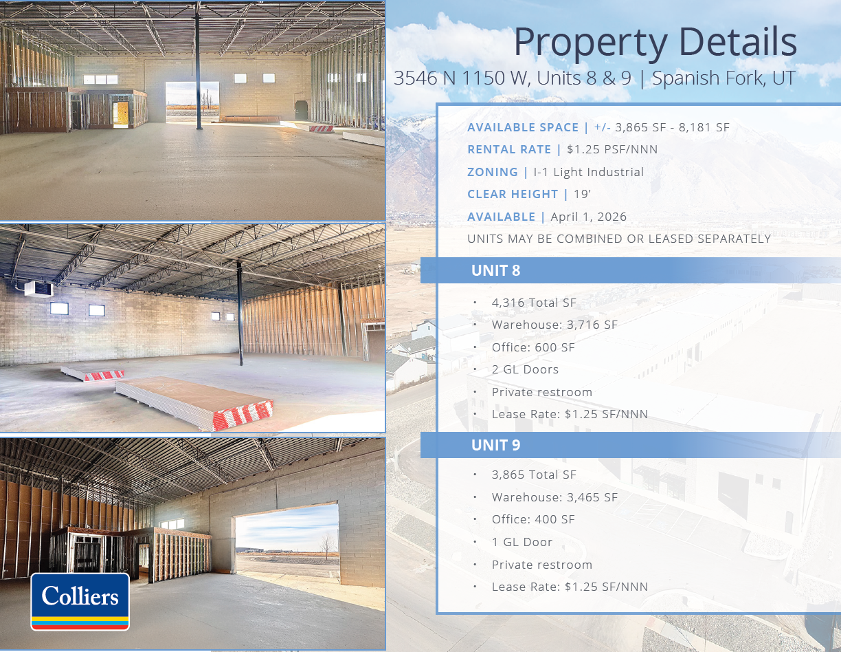 Listed by Colliers. For additional information please contact James Yeates at 801-995-0049 or james.yeates@colliers.com.