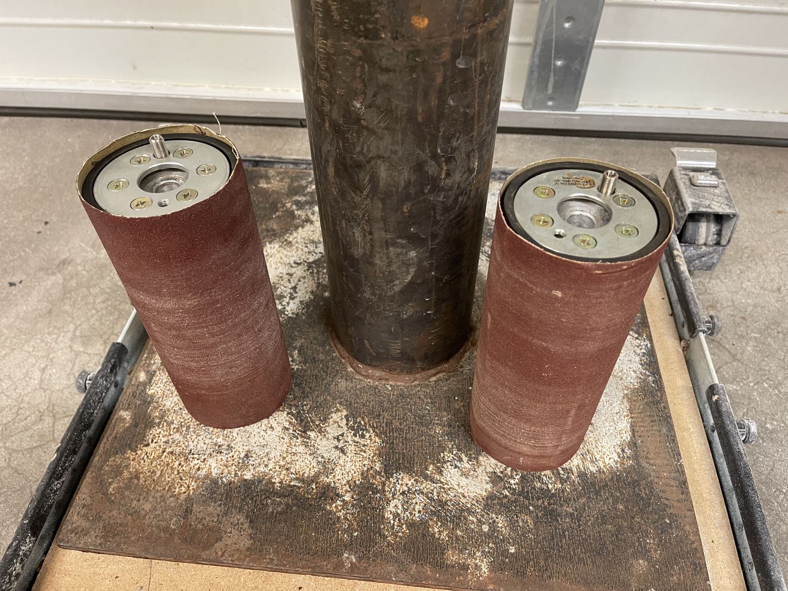 VenmoThis sander is great for odd shapes and curves. Includes flap assembly, one 5" pneumatic head, and two 3" pneumatic heads as well as custom steel pedestal and mobile base. Stands about 4 feet tall. Asking $275.