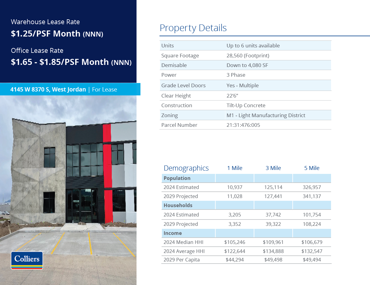 Listed by Colliers. For additional information please contact James Yeates at 801-995-0049 or james.yeates@colliers.com.