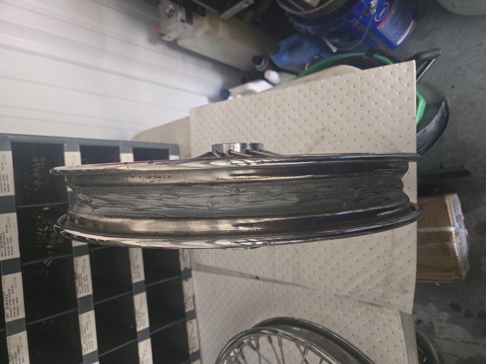 a pair of 17" x 3" spindle mount wire wheels , 1 wheel need 4 spokes replaced