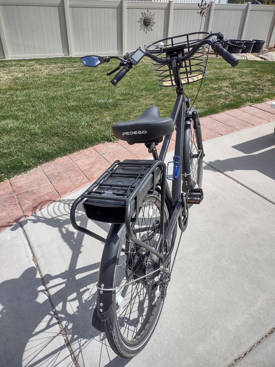 Excellent condition, only has 173 miles, front and seat suspension, front basket, left mirror. 48V/15A/720W rechargable battery and charger. 28 inch wheels, pedal assist and twist throttle, easy adjustable handlebars, headlight and rear light, control module, 500W/20mph electric motor. Must see in person to buy, text Koz at 801-721-9541, cash only, thanks.