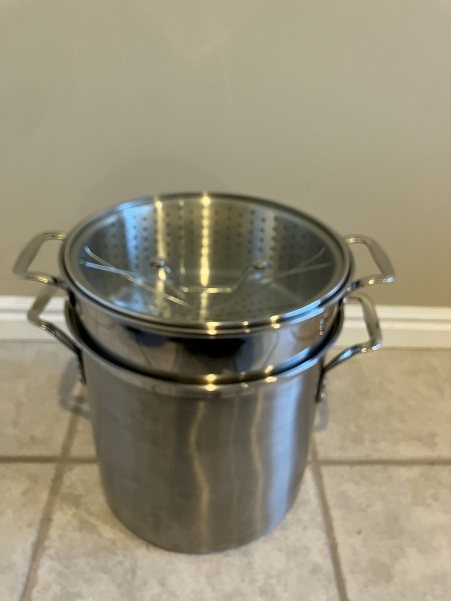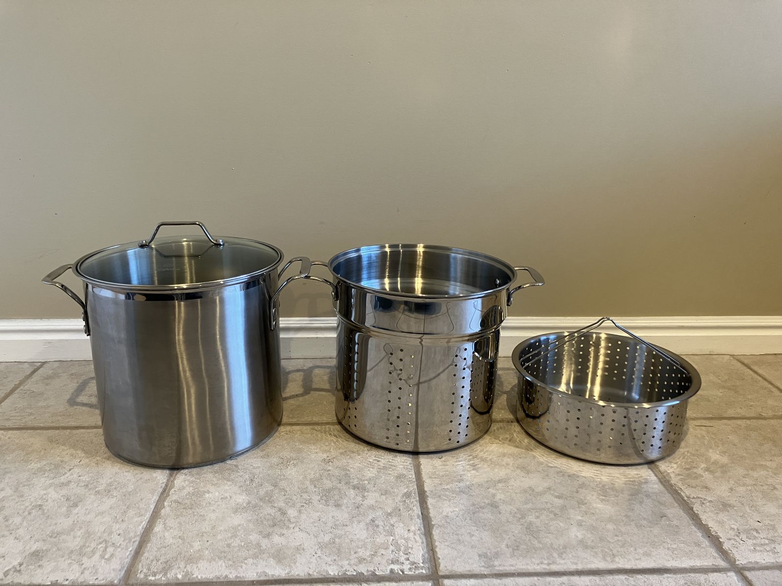 PayPal12 Qt multipot combines the versatility of a stockpot with a perforated insert. Crafted of 90% recycled stainless steel, the two-piece set is ideal for cooking pasta, blanching vegetables, steaming shellfish & boiling potatoes or use the stockpot on its own to make soup, stock or stew.