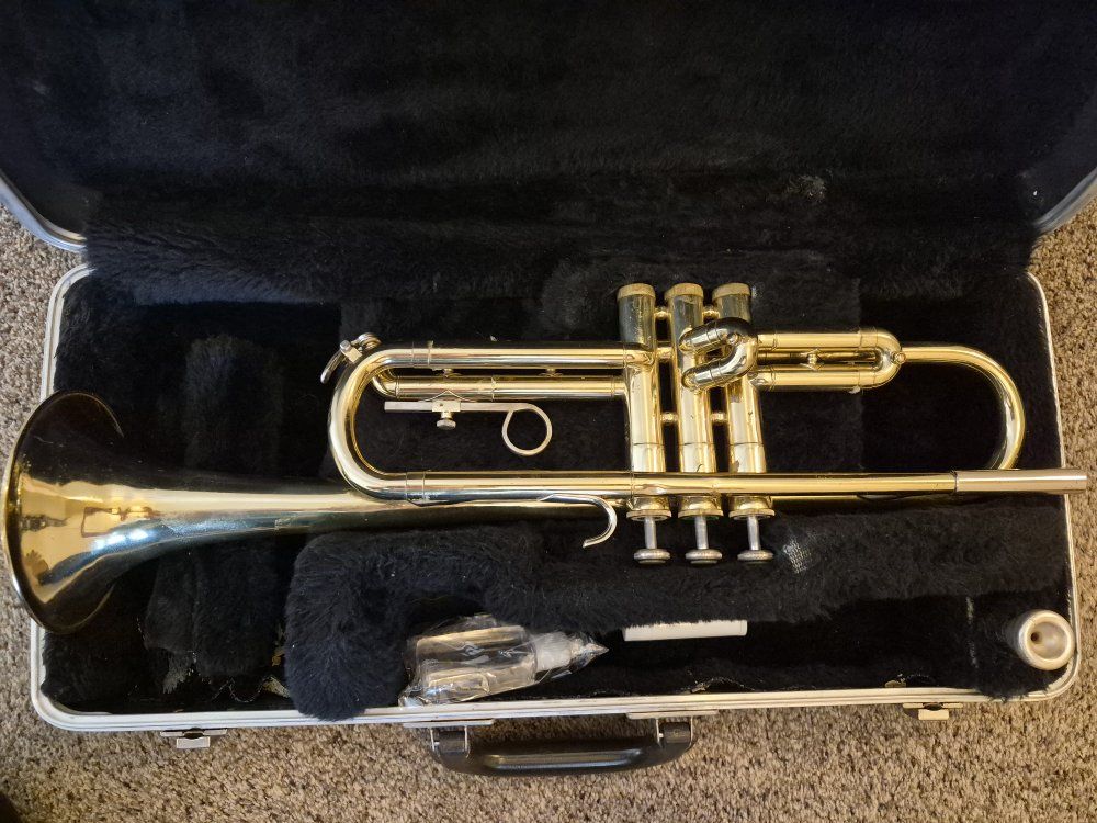 Just serviced and cleaned. In great working order and no repairs needed. Includes a sanitized mouthpiece and starting materials. I'm a musician and technician and guarantee it is ready to go or you can exchange it. All slides and valves move freely. No dents, a couple dings. If your band teacher doesn't approve you can exchange it. Feel free to call or text if you have questions.