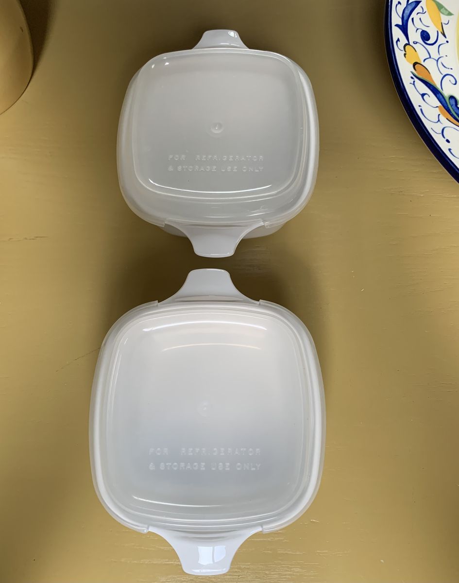 Venmo2 Vintage made in USA dishes from the “Spice of Life collection of the 70’s. The dishes hold 2 3/4 cups. The lids are plastic and intended for refrigerator/storage use only. No chips or cracks. Lids have not yellowed from age. Clean and ready to go.. Venmo to hold. Non-smoking/No pet home.