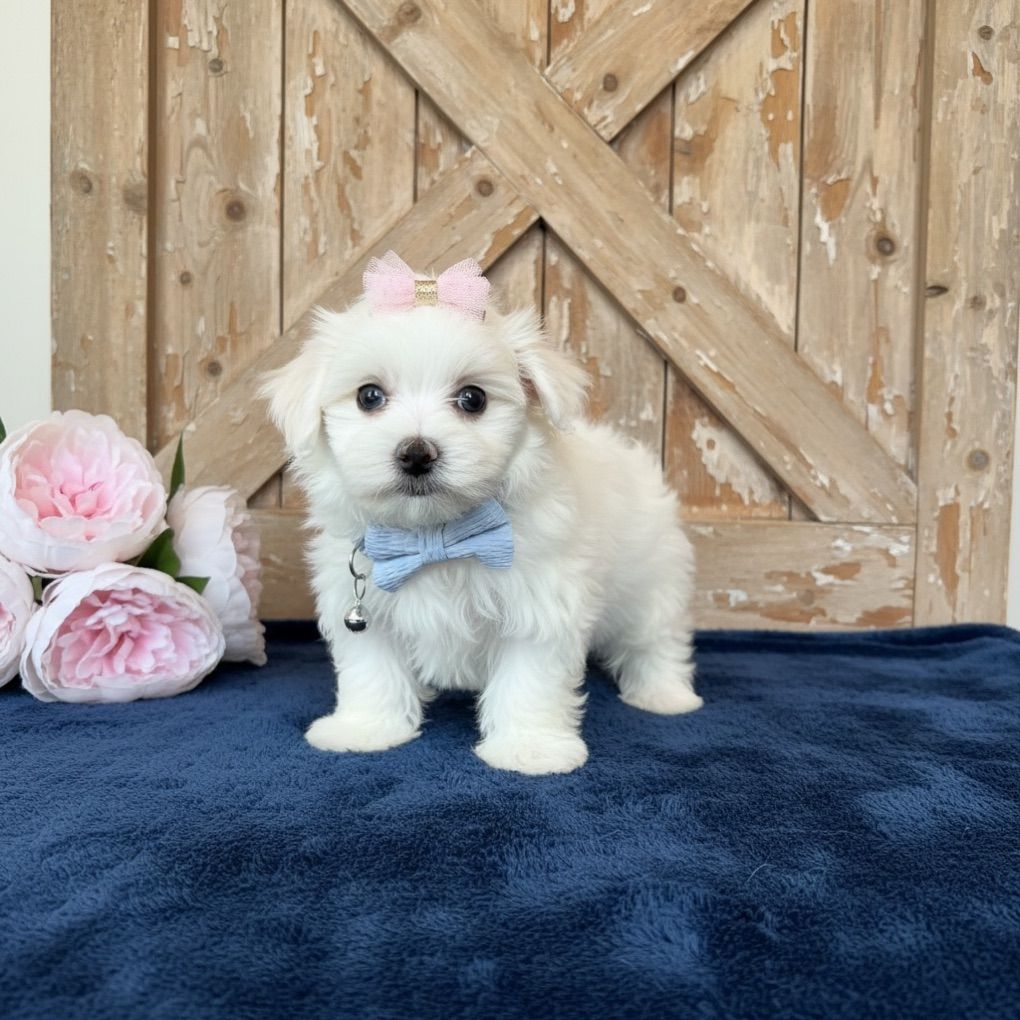 We have two DARLING MALTIPOO Girls READY to take home now!! They are 10 weeks old. They have 3 puppy shots done. Potty training started. Raised around kids and other pets. They have AMAZING thick coats and babydoll faces. Dad is a teacup Maltese and came from KOREA and has the cutest face ever!! Mom is a mini Maltipoo. She is so sweet and loving. Each puppy comes with a health guarantee, current shots, and a HUGE puppy kick!!