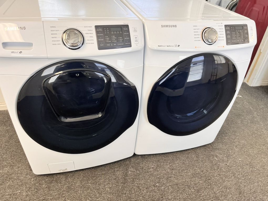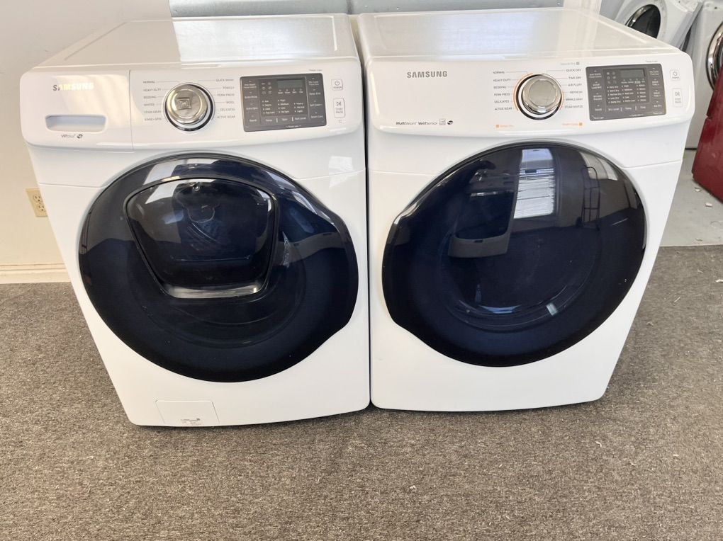 Very nice Samsung washer and dryer set in excellent condition and very clean inside and out, both look and work amazing. The dryer is electric and has steam refresh option to remove wrinkles and freshen up your load saving you the hassle of ironing they can be stacked or side by side. Only $550. I can deliver and install for a little extra. Call 8015403075