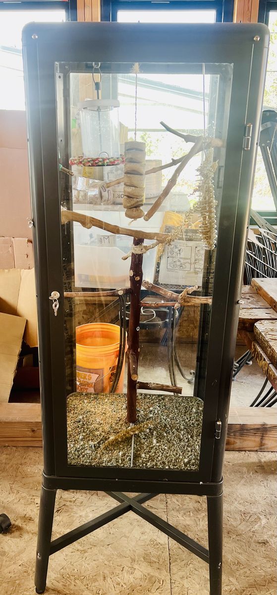 Custom high quality, bird enclosure for many types birds with durable glass panels. A glass panel cage is a great way to enjoy your pet bird from all angles.