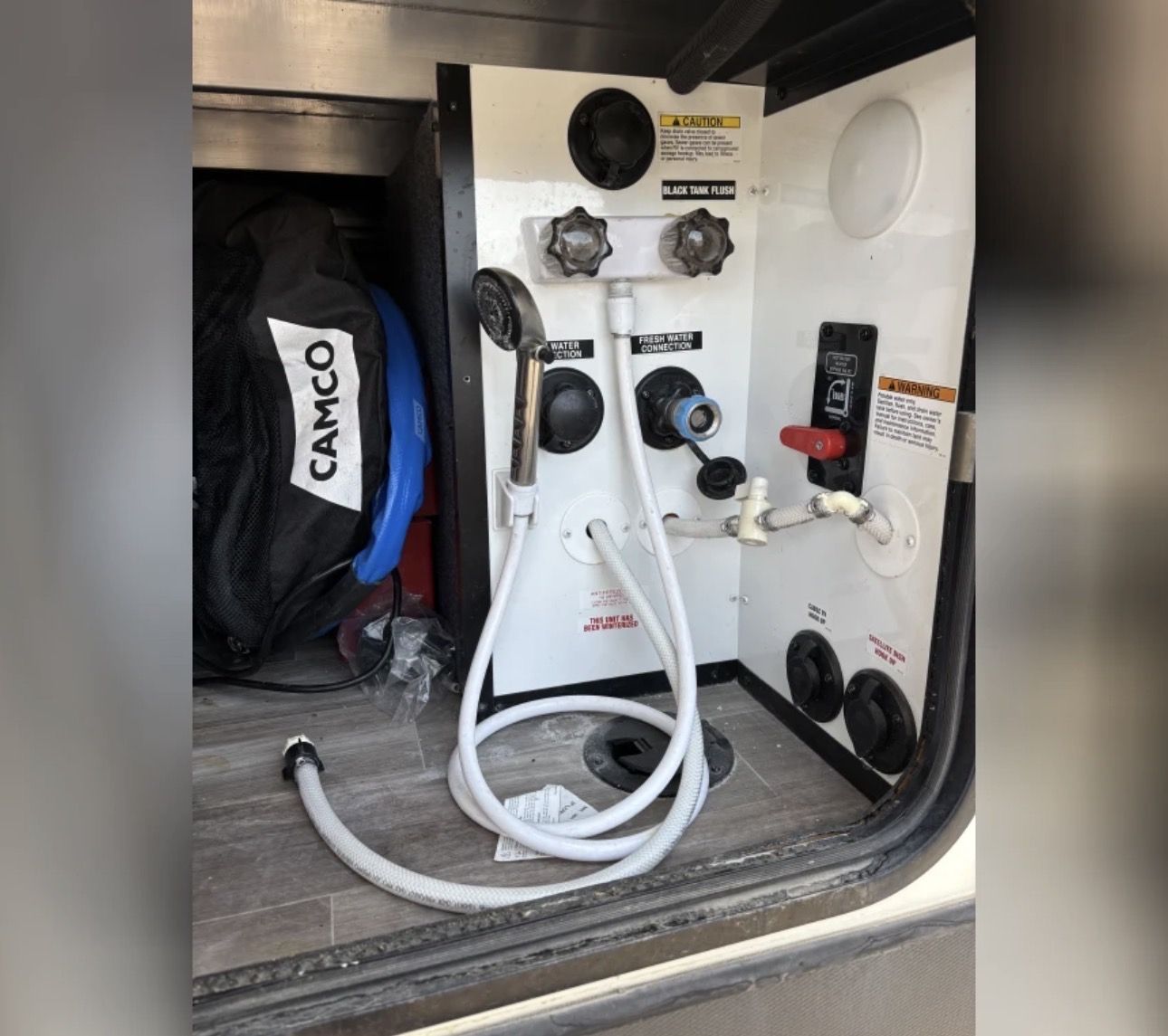 We recently had a complete tune-up on it and also put in brand new batteries and an inverter. The box seen in the kitchen is a cover that we had recently purchased that we are also including. We are also including a new Anderson hitch.
