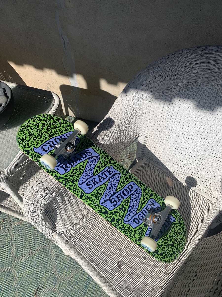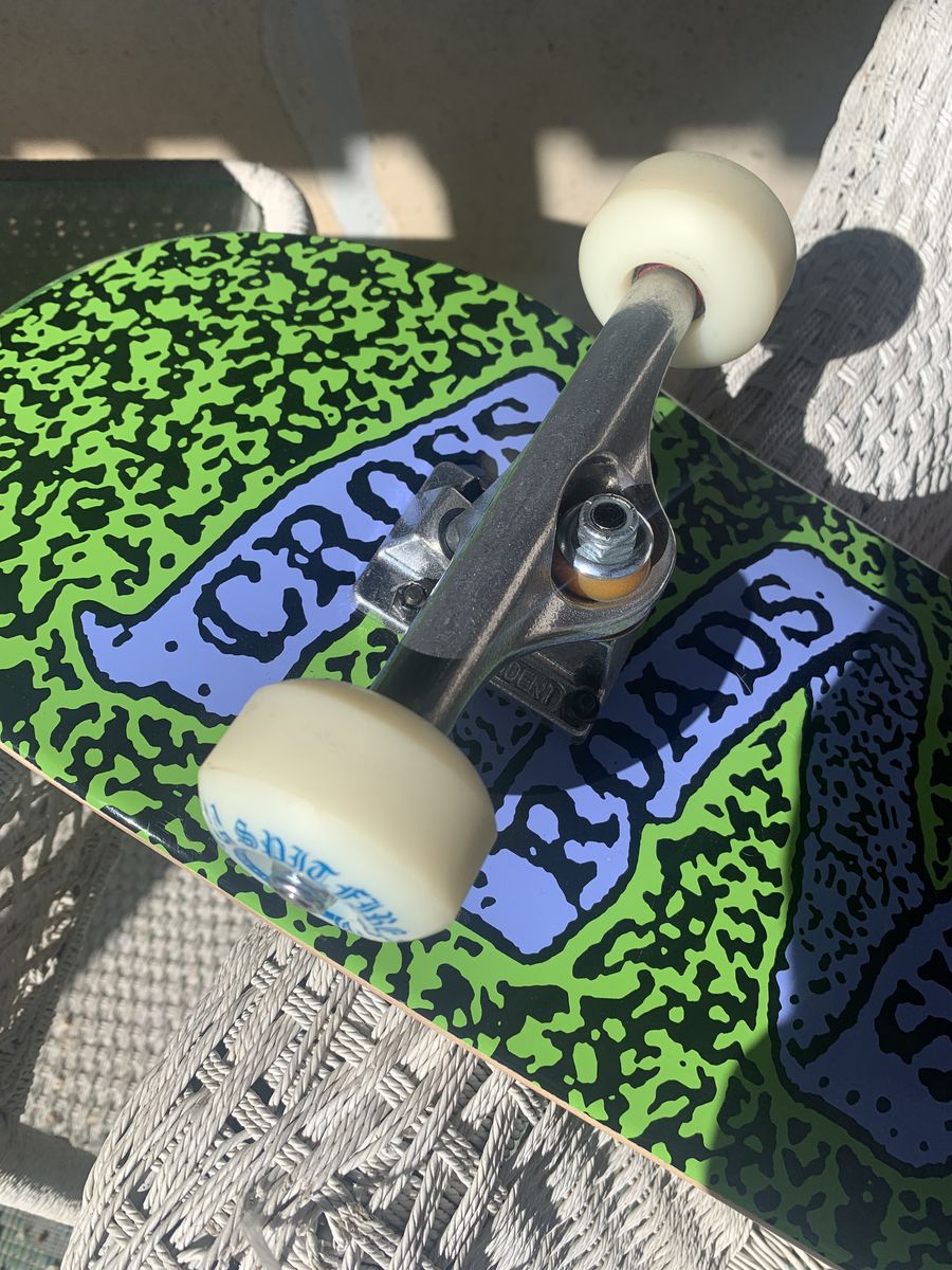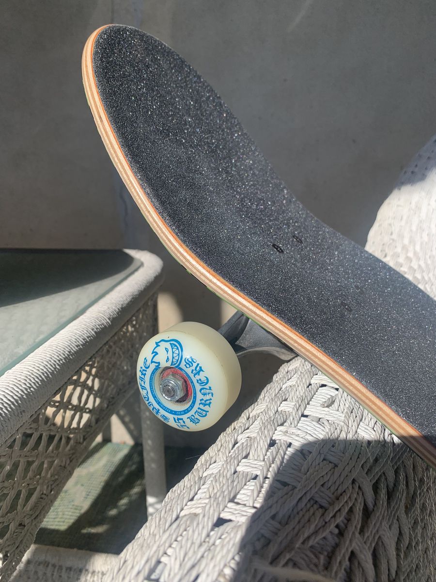Skateboard in excellent condition. One ridden a few times not on asphalt. Everything in perfect-near perfect condition.
