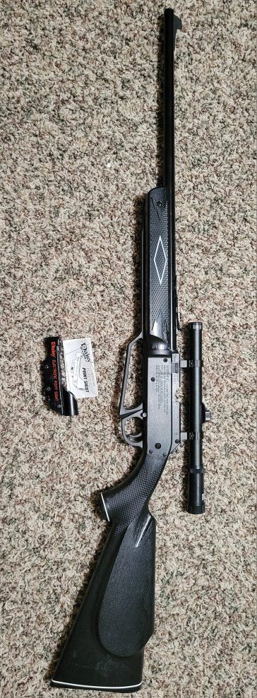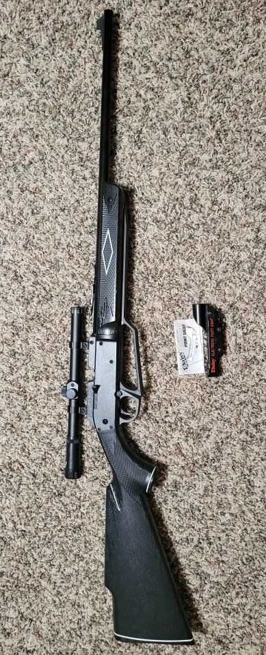 VenmoDaisy 880 pump, comes with a Scope and a Daisy electronic sight. Shoots .177 pellet or 4.5mm BB's. This rifle is basically new. ($55)