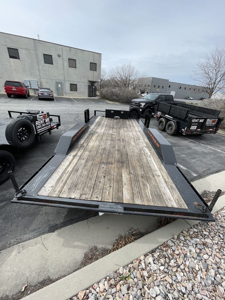 2025 8.5x18 heavy-duty flatbed trailer in excellent condition. Perfect for hauling vehicles, equipment, tractors, or materials.