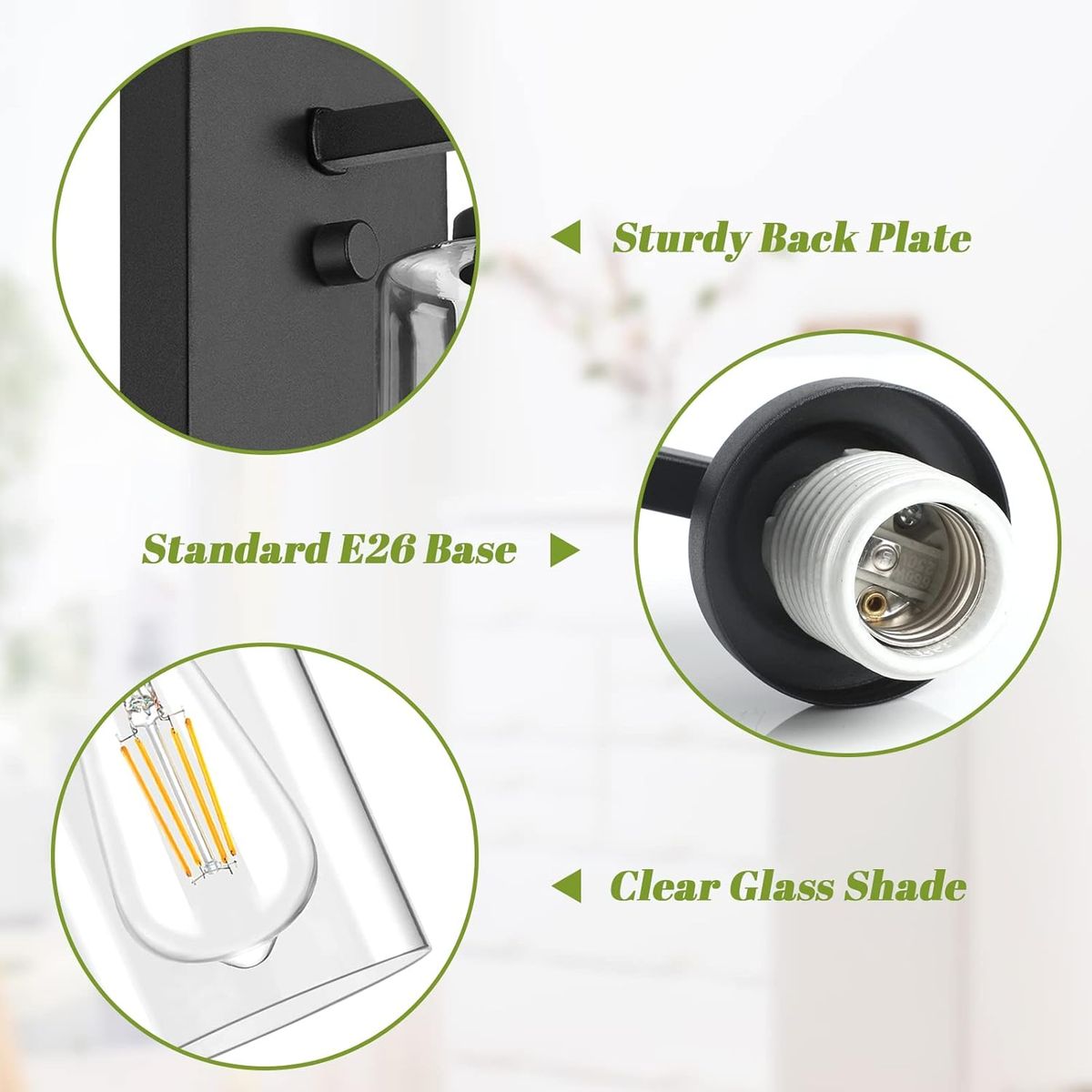 About this item - Durable Material& Stylish Design: The modern wall lights set of two are well-made with a durable matte black finish so that this black wall light fixtures are waterproof, anti-rust and corrosion, don’t worry about color fading, equipped with a clear glass lampshade, allowing your bulb to emit bright lighting to create a wonderful atmosphere for your place