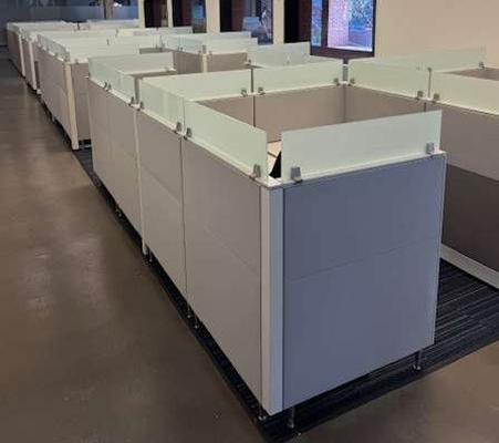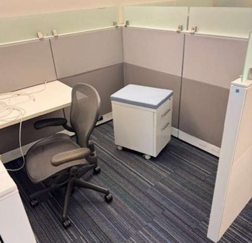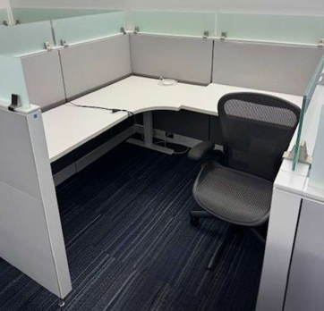 Venmo6’ x 6’ Friant Interra Cubicle with height adjustable desk, mobile box file drawer. 53” T with Frameless Glass. 60 stations available.