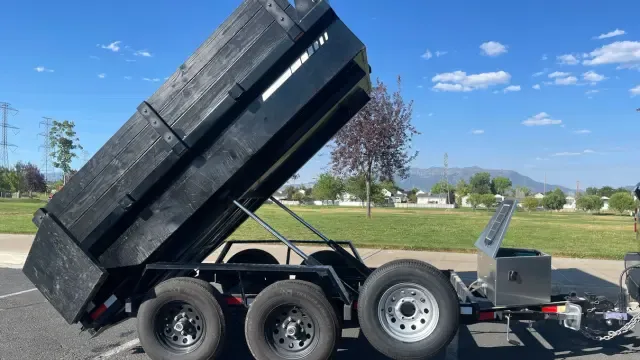 2024 5x10 dump trailer in great condition. Perfect for landscaping, gravel, dirt, yard debris, construction cleanup, and small equipment.