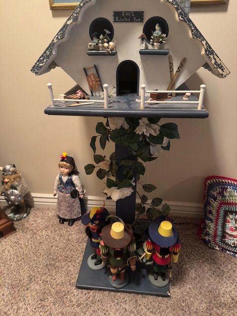 This style is typical of handcrafted decorative birdhouses sold in gift shops or craft markets, often made in the 1970s–1990s folk-decor trend.